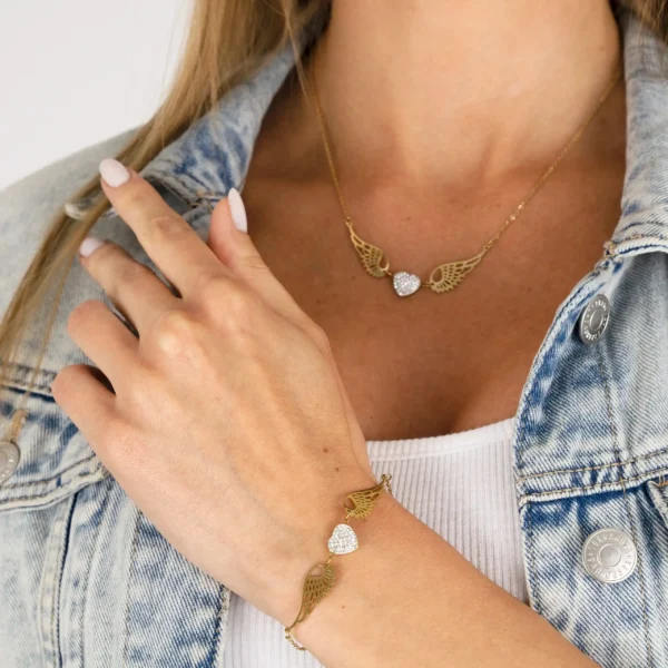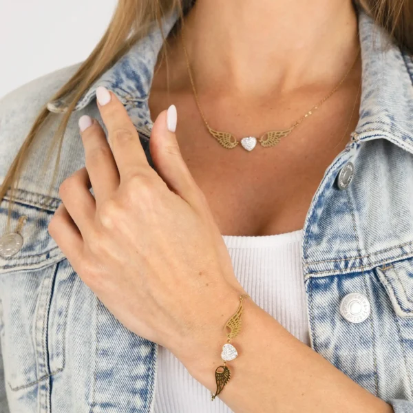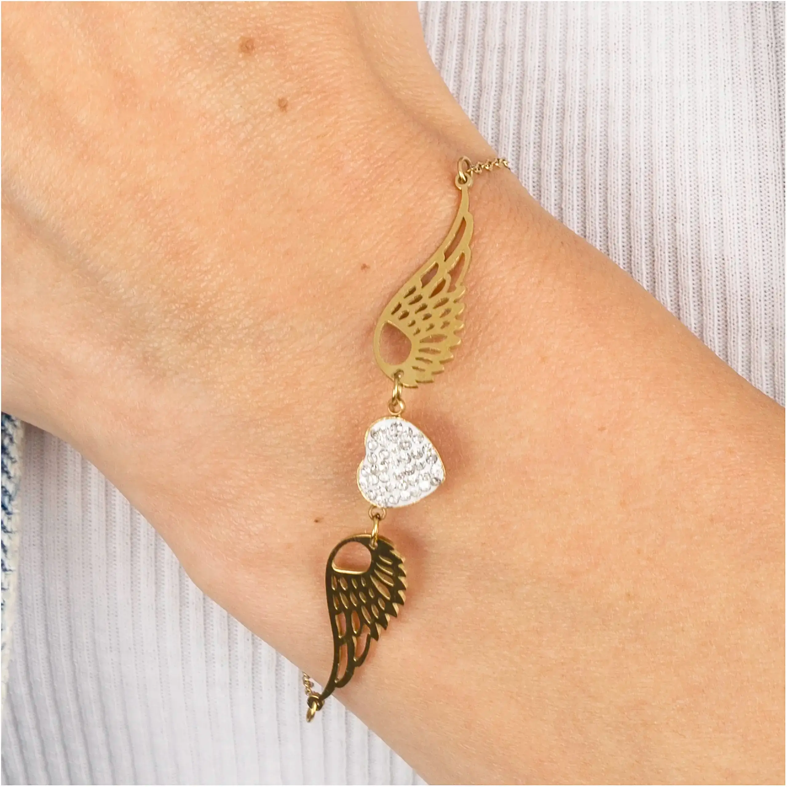 Strona główna | Sklep | Bestsellery | Bransoletka damska Skrzydła złoty stal chirurgiczna stali regulowana
