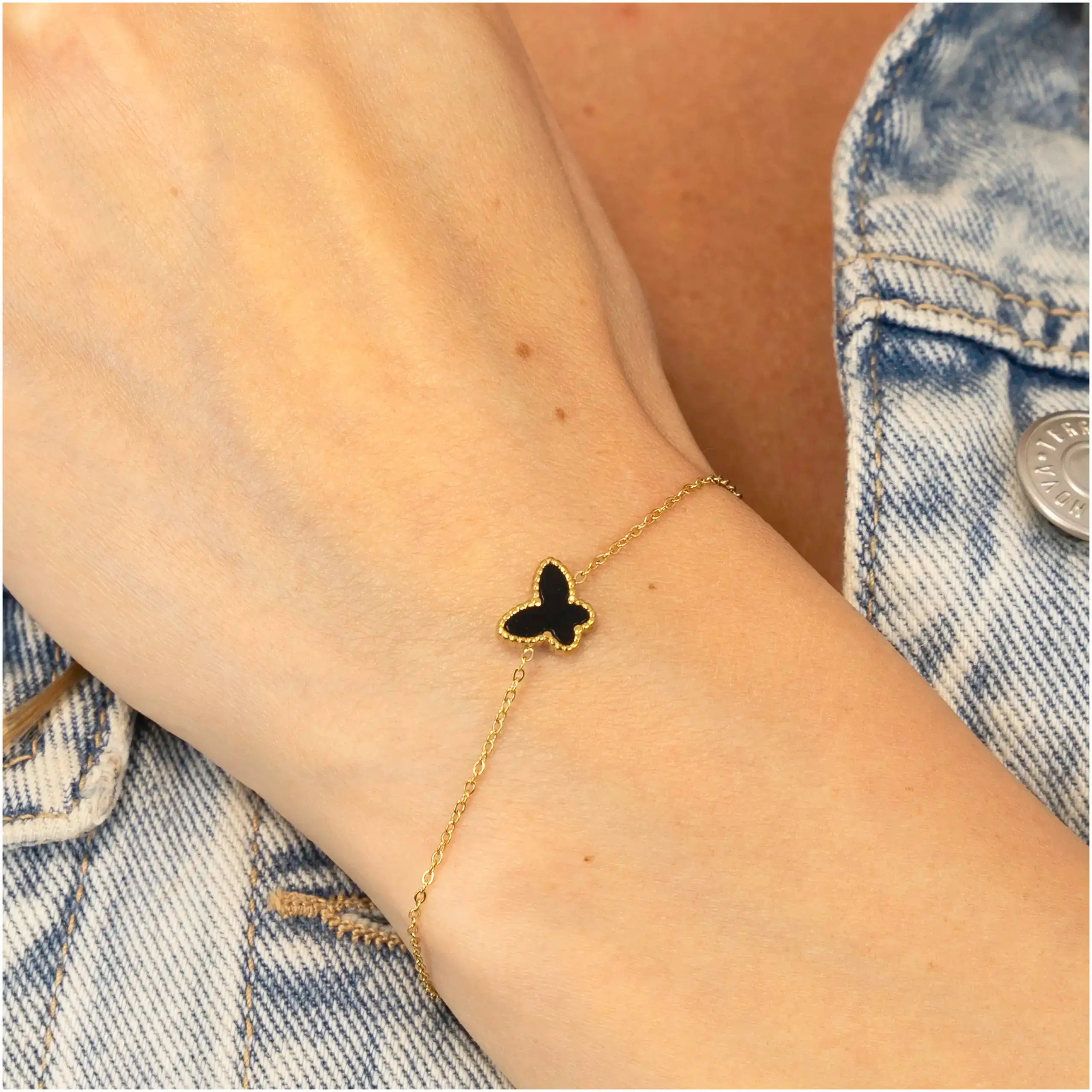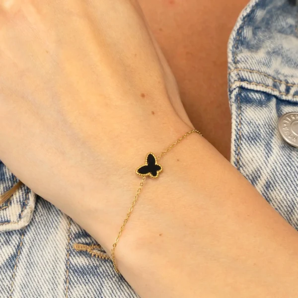 1 opinia dla Bransoletka damska złota Motyl stal chirurgiczna stali z czarnym czarna