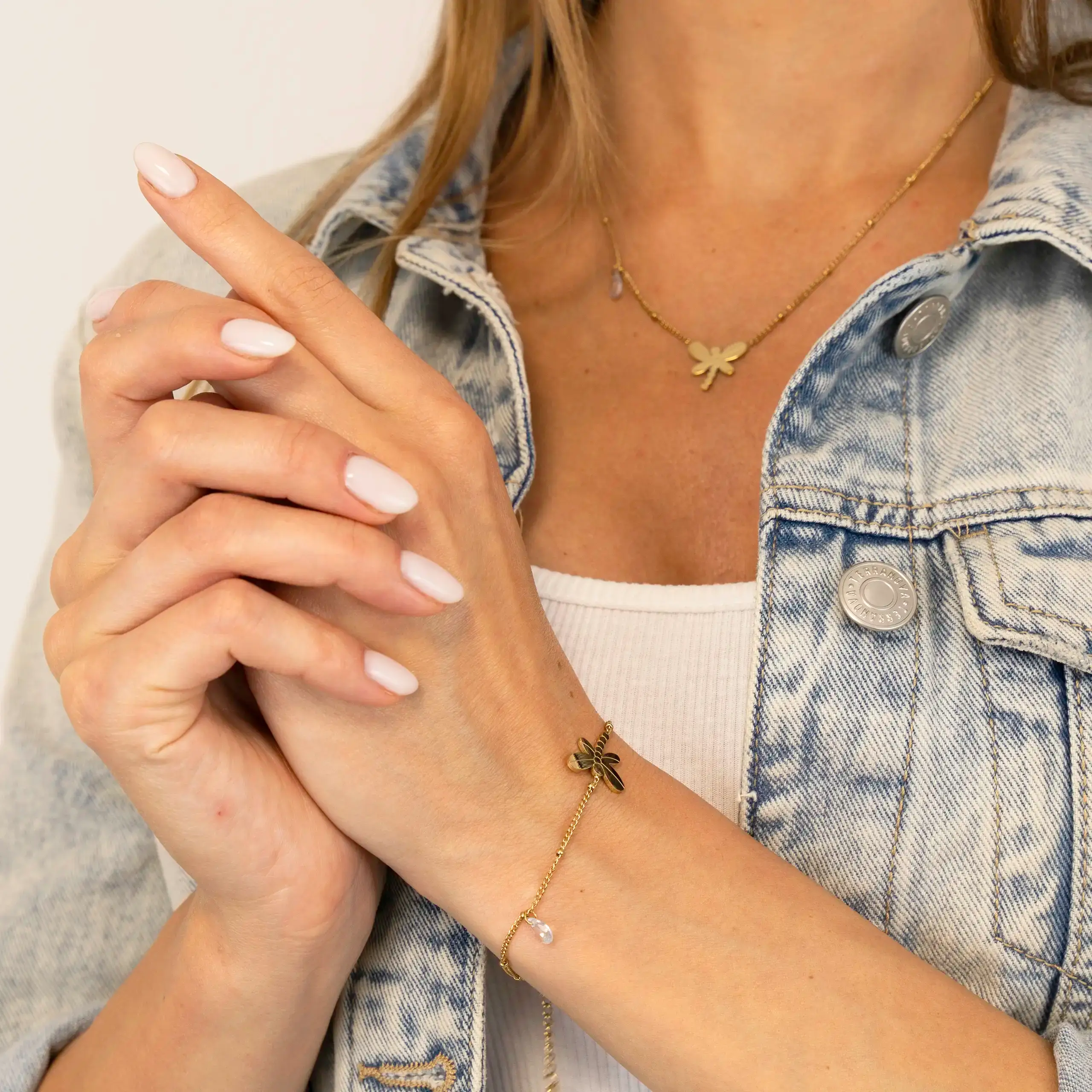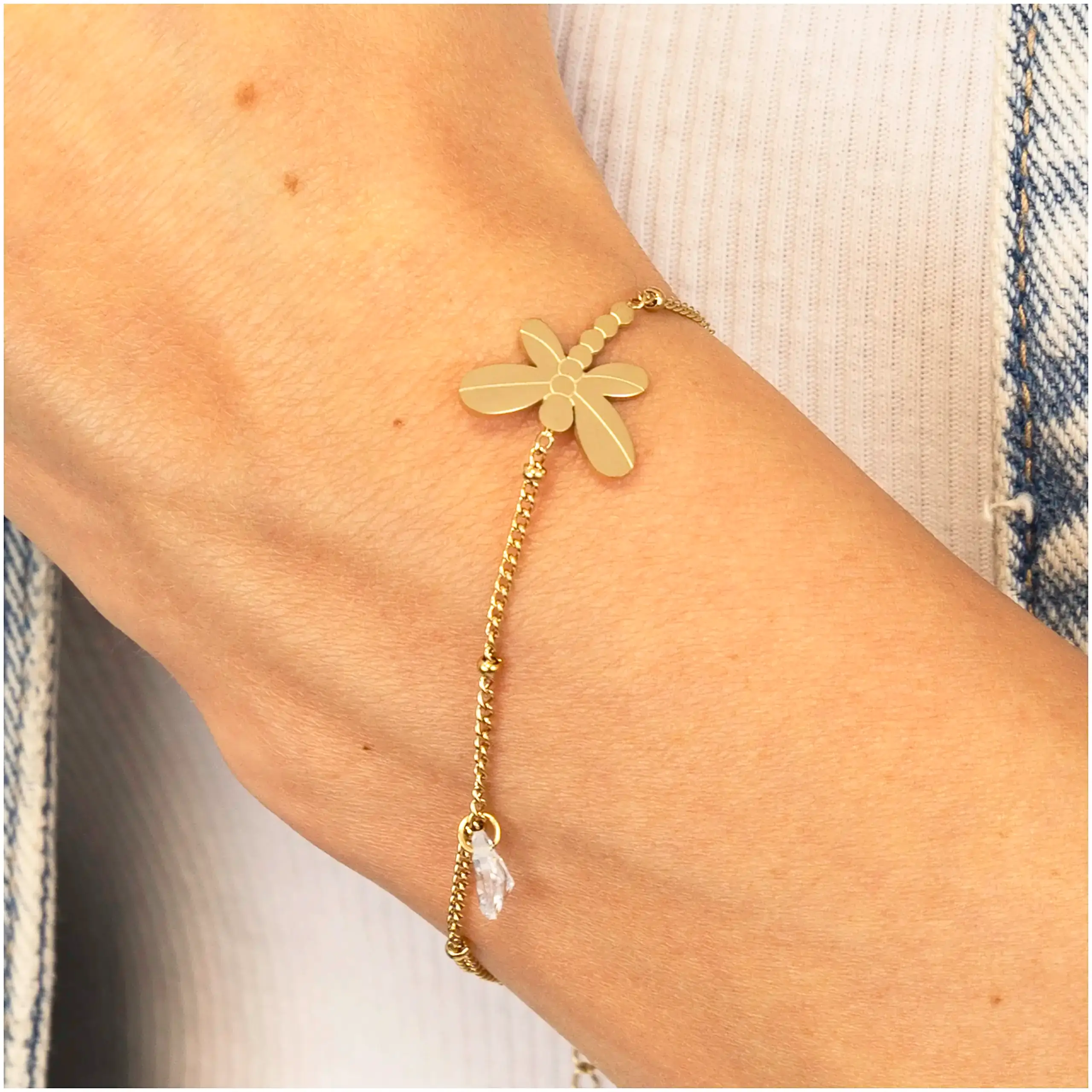 Bransoletka damska złota Ważka stal chirurgiczna ze stali na szczęście