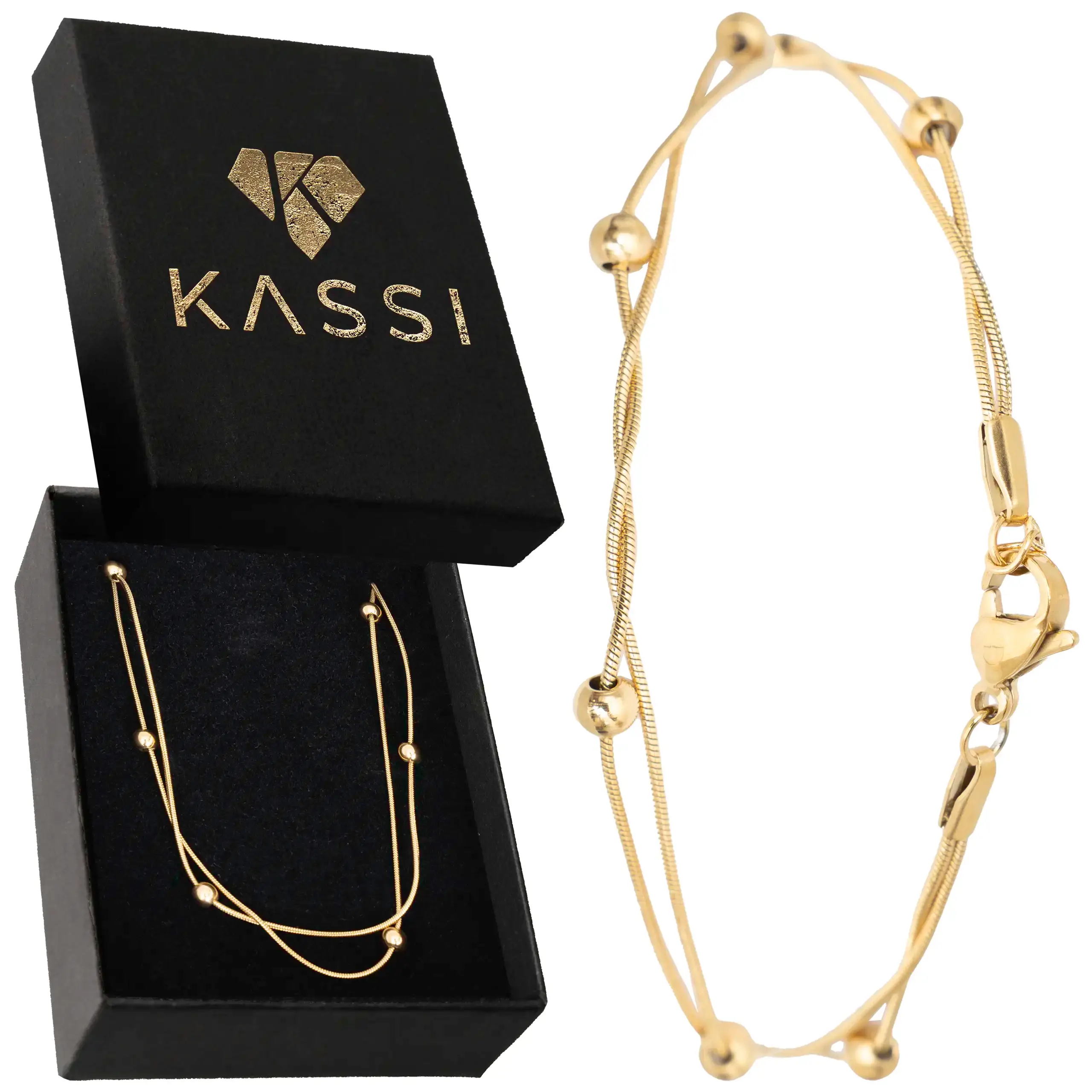 Strona główna | Sklep | Bransoletki na nogę | Bransoletka Nogę na kostkę złota linka podwójna z kulkami ze stali 316L