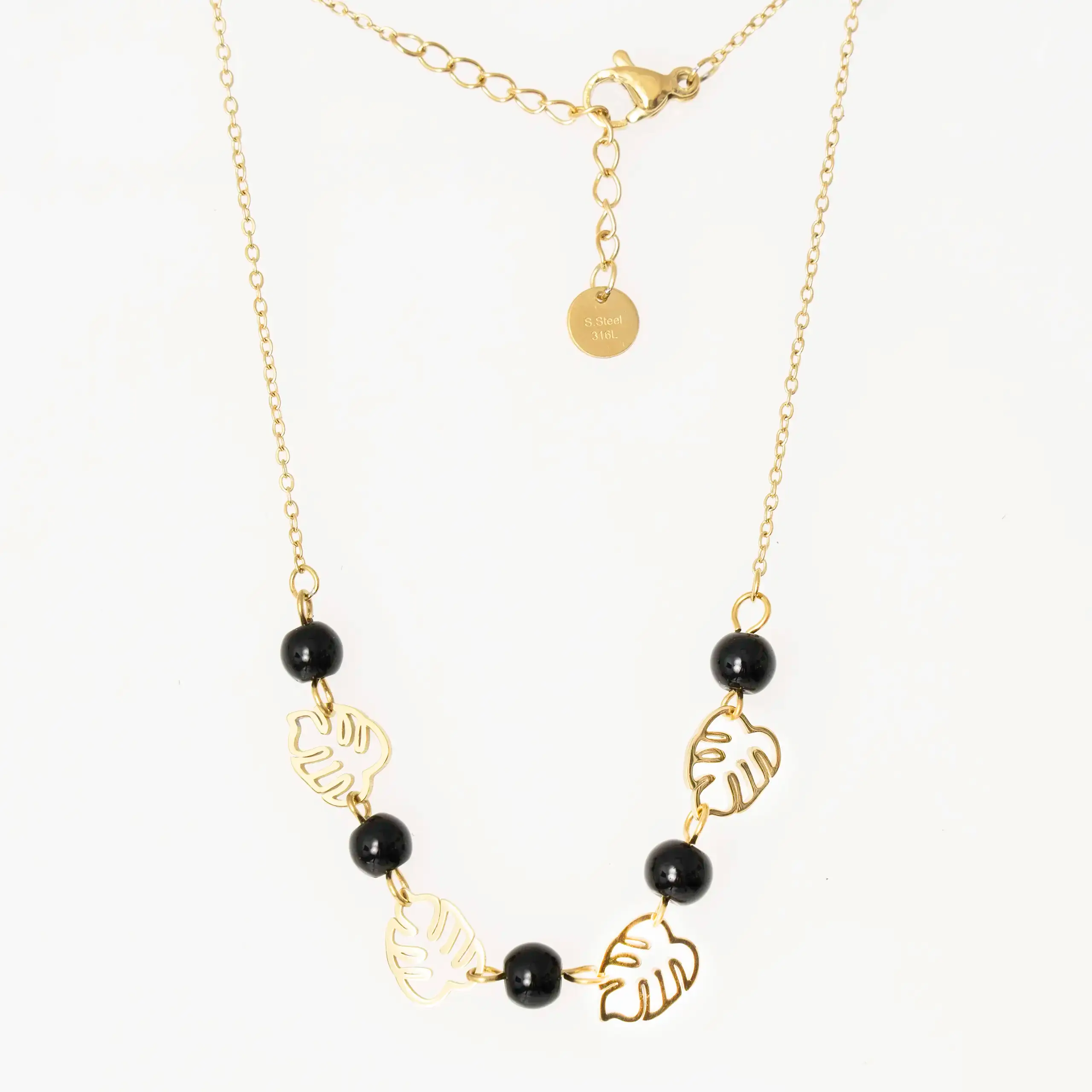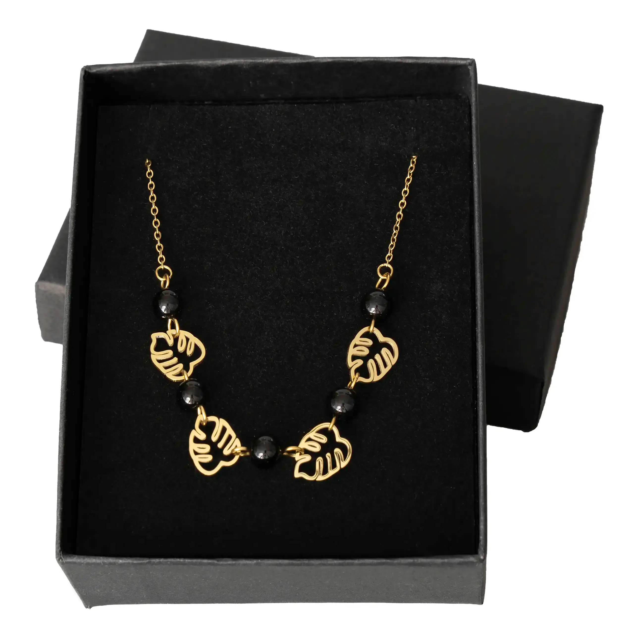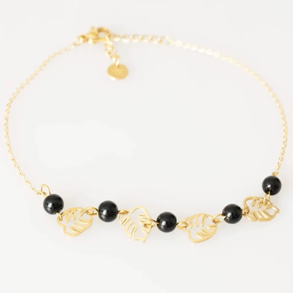 Bransoletka na Nogę złota Liść stal chirurgiczna ze stali – pudełko gratis