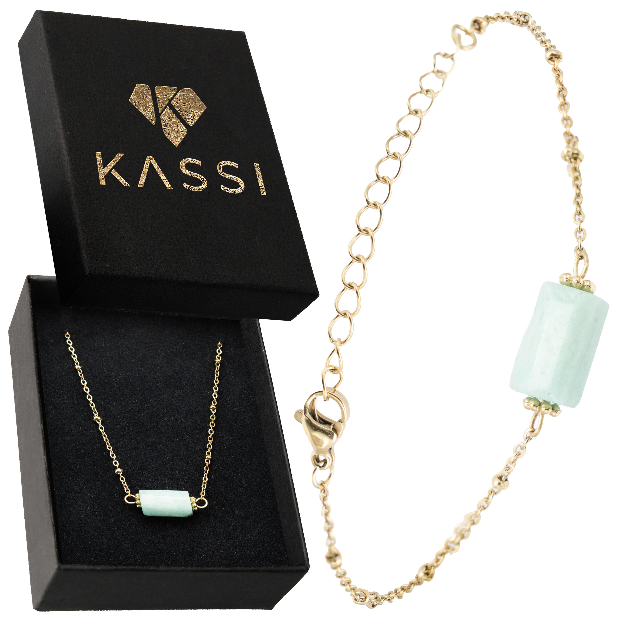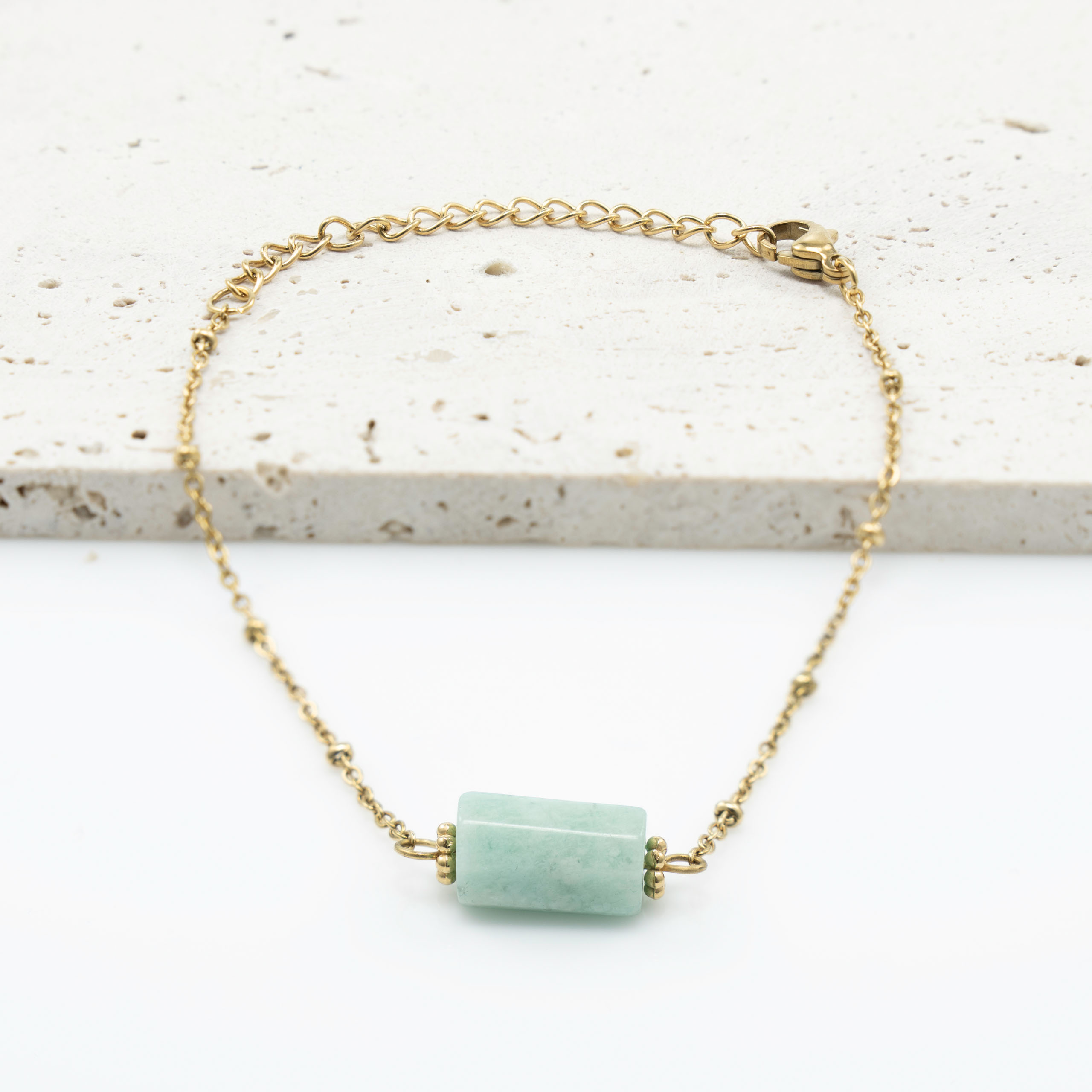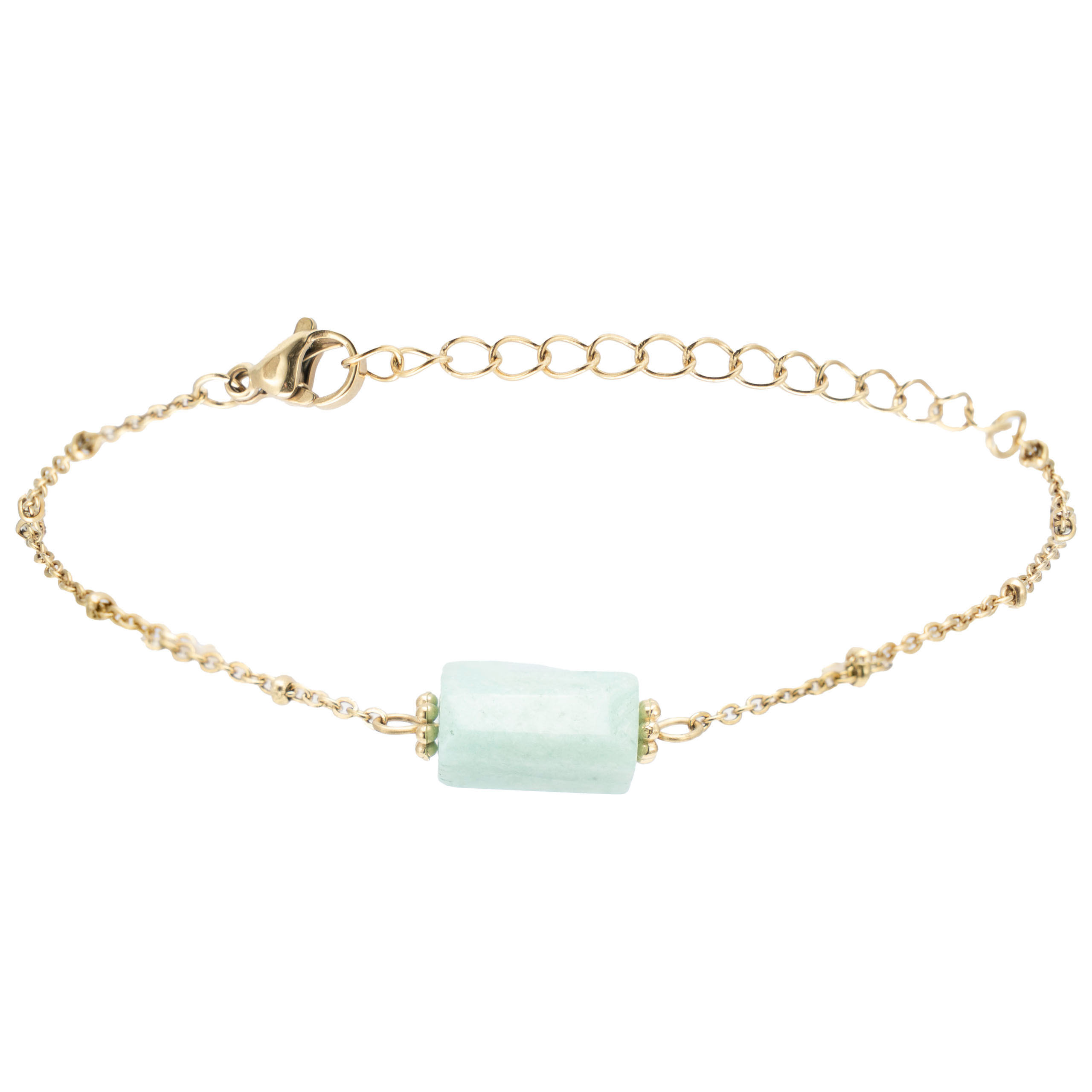 Strona główna | Sklep | Bransoletki | Bransoletka pozłacana ze stali chirurgicznej z Amazonitem talizman kamień