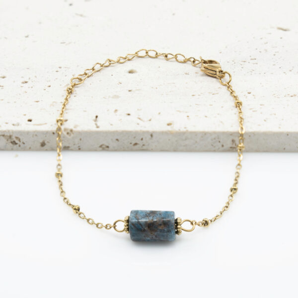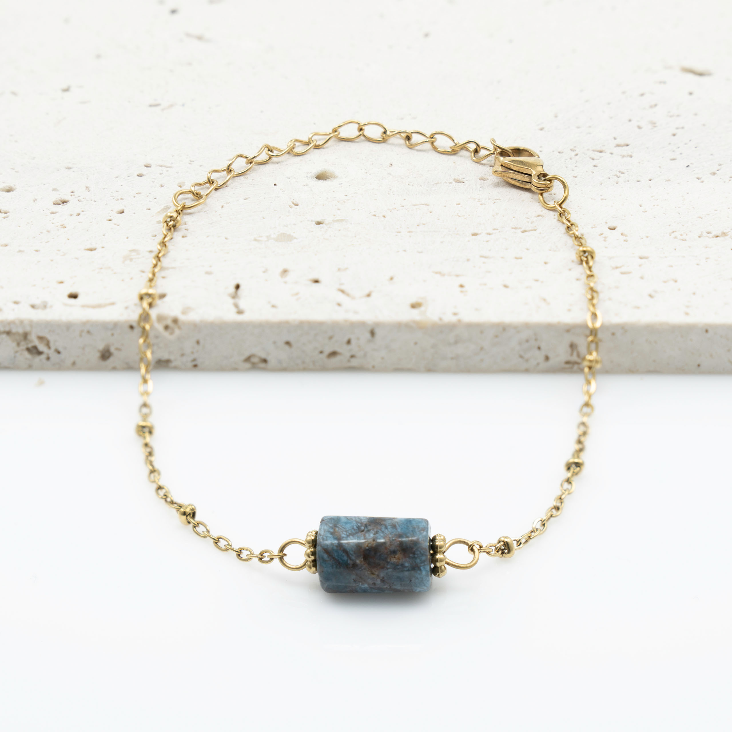 Strona główna | Sklep | Bransoletki | Bransoletka pozłacana ze stali chirurgicznej z Apatytem kamień naturalny