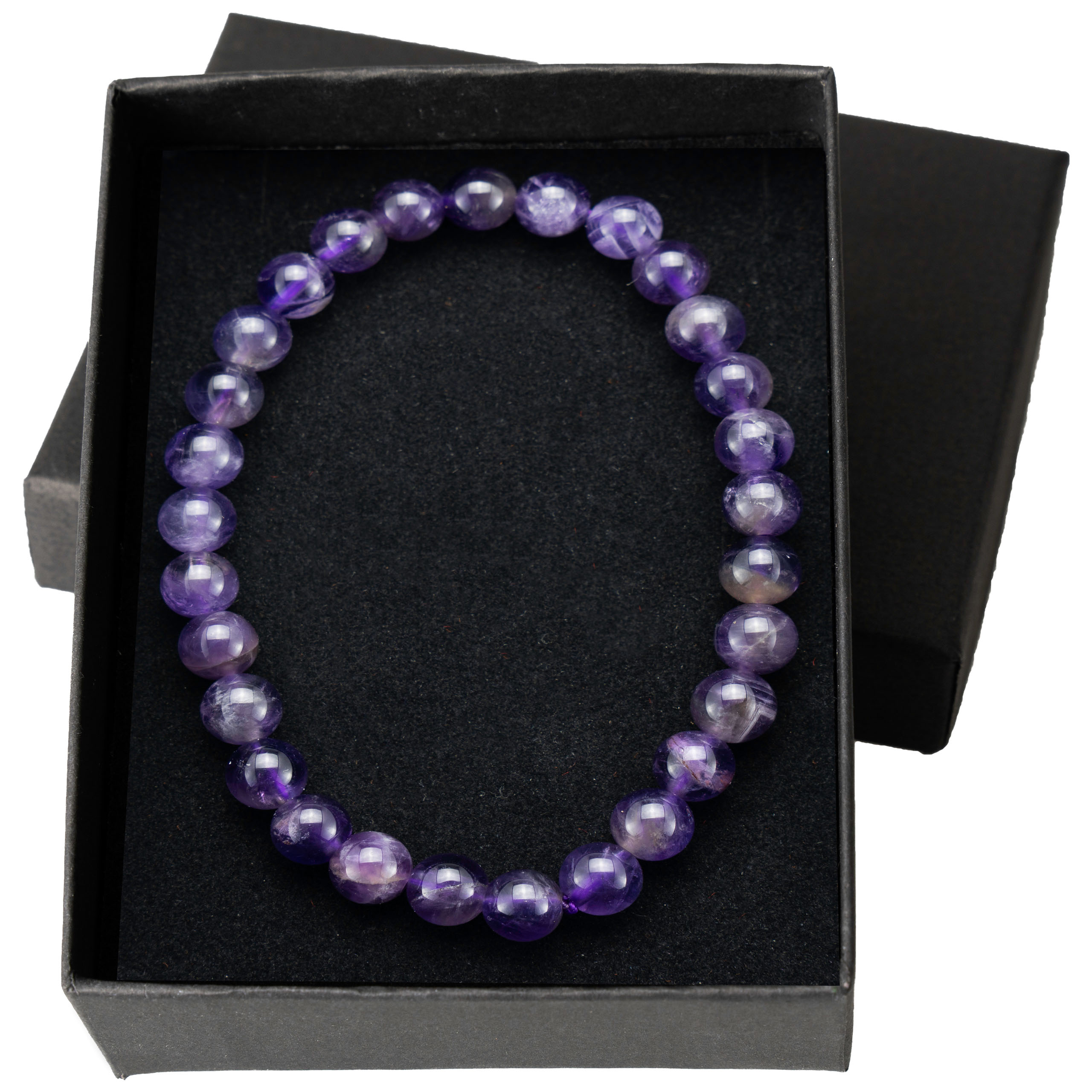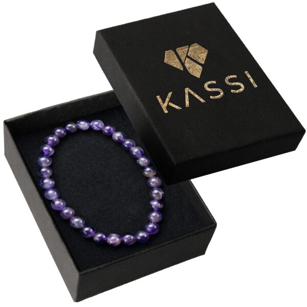 Ametyst widmowy, ceniony za swoje właściwości uspokajające, wierzono, że wspiera spokój umysłu i intuicję. Świetna jako biżuteria na prezent lub osobisty skarb dla fanów kamieni szlachetnych. Zapakowana w stylowe czarne pudełko, czeka na odkrycie – kup biżuterię online już dziś! Wzbogać swoją kolekcję o ten wyjątkowy akcent i wyraź swoją indywidualność. Zamów teraz!