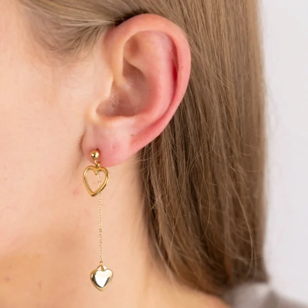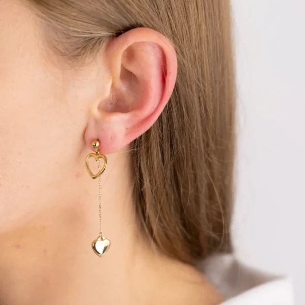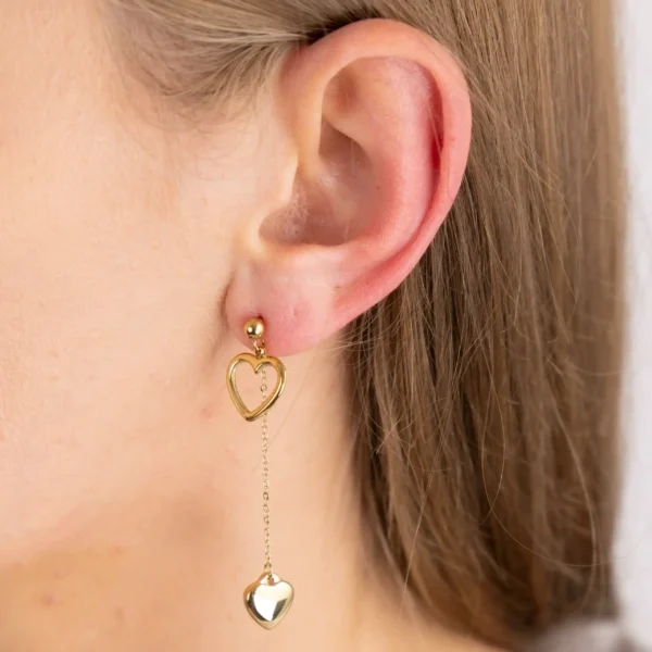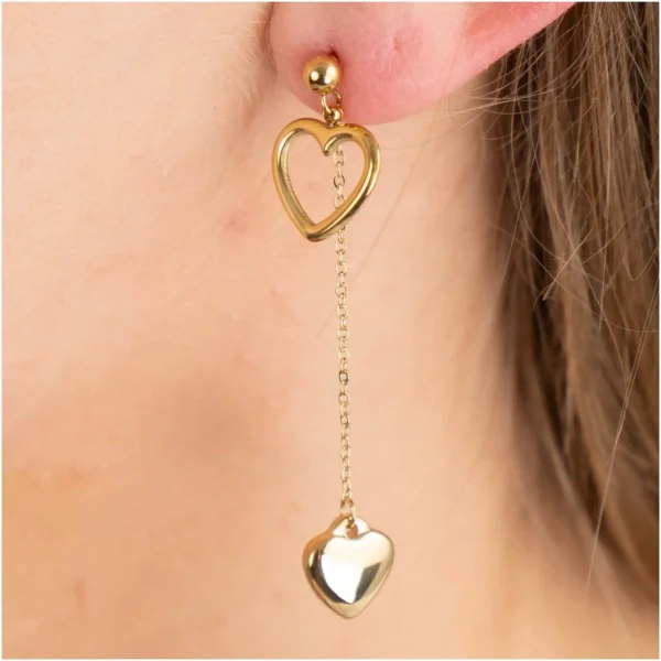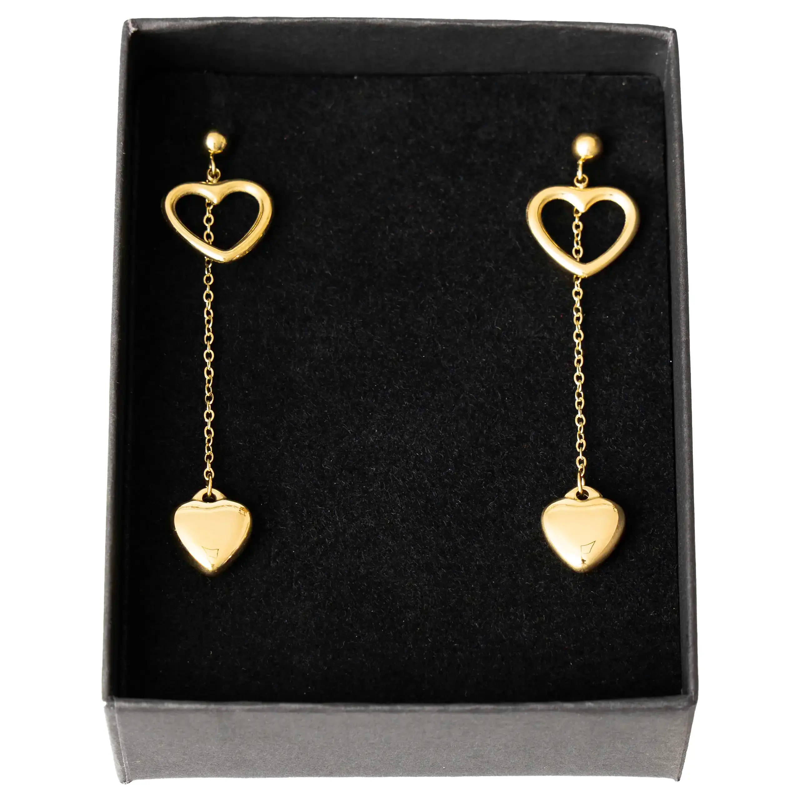 Strona główna | Sklep | Kolczyki | Kolczyki damskie złote stal chirurgiczna pozłacane wiszące serce z sercem