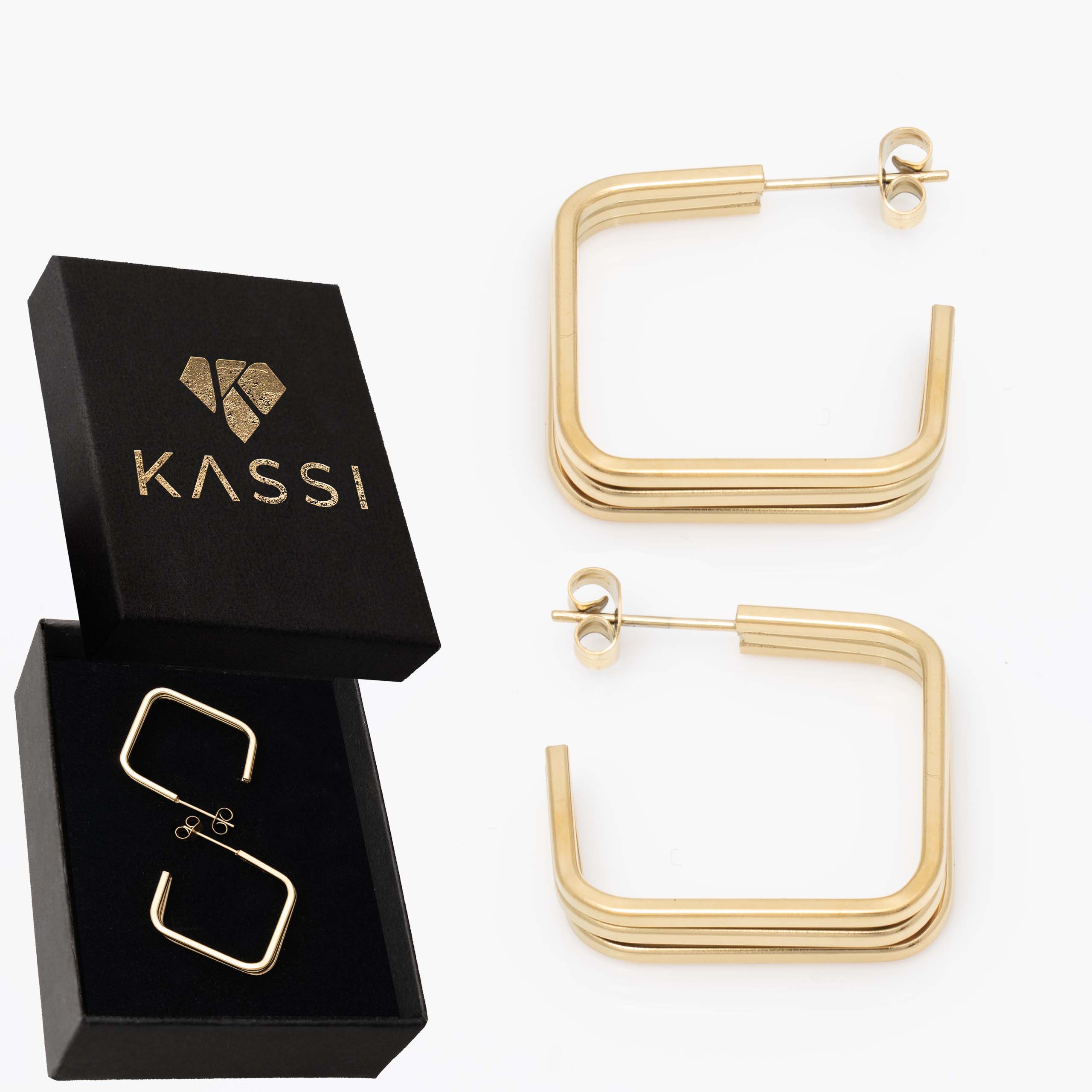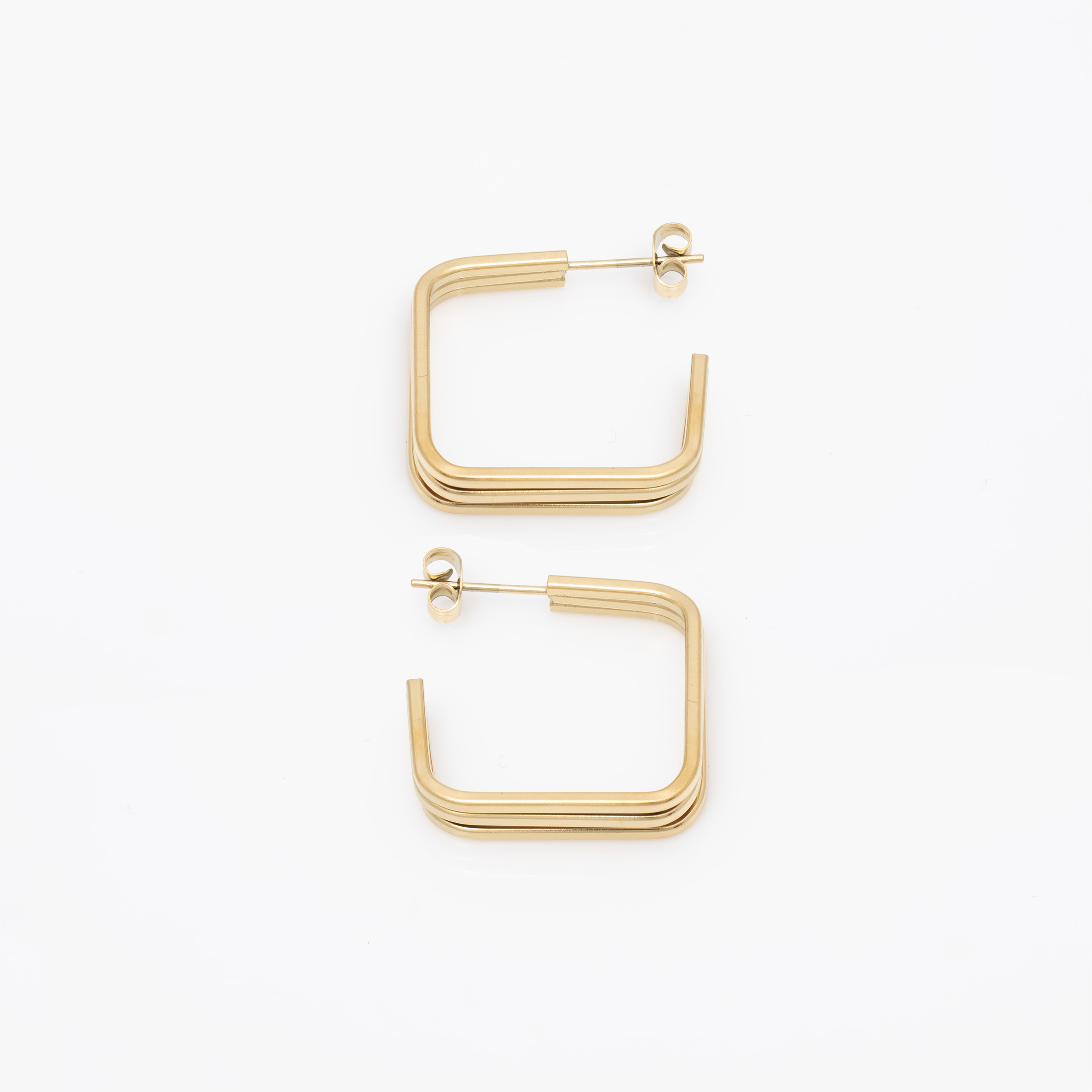 Kolczyki to nowoczesne, geometryczne kwadraty ze stali chirurgicznej z efektowną, otwartą formą i warstwowym designem. Minimalistyczne, ale bardzo wyraziste – dodają stylizacji współczesnego charakteru i czystej elegancji.