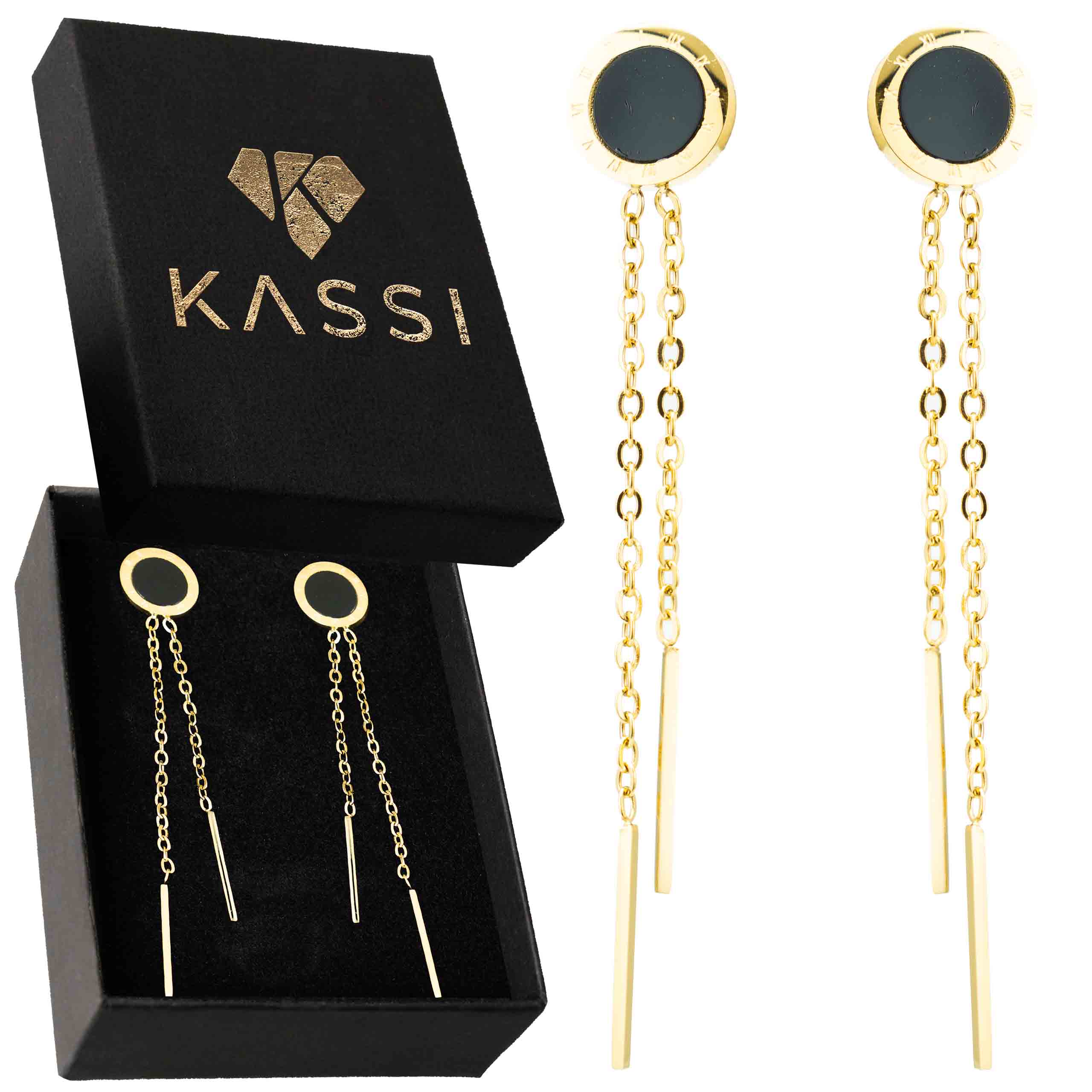 Strona główna | Sklep | Kolczyki | Kolczyki damskie pozłacane stal chirurgiczna czarne modne długie