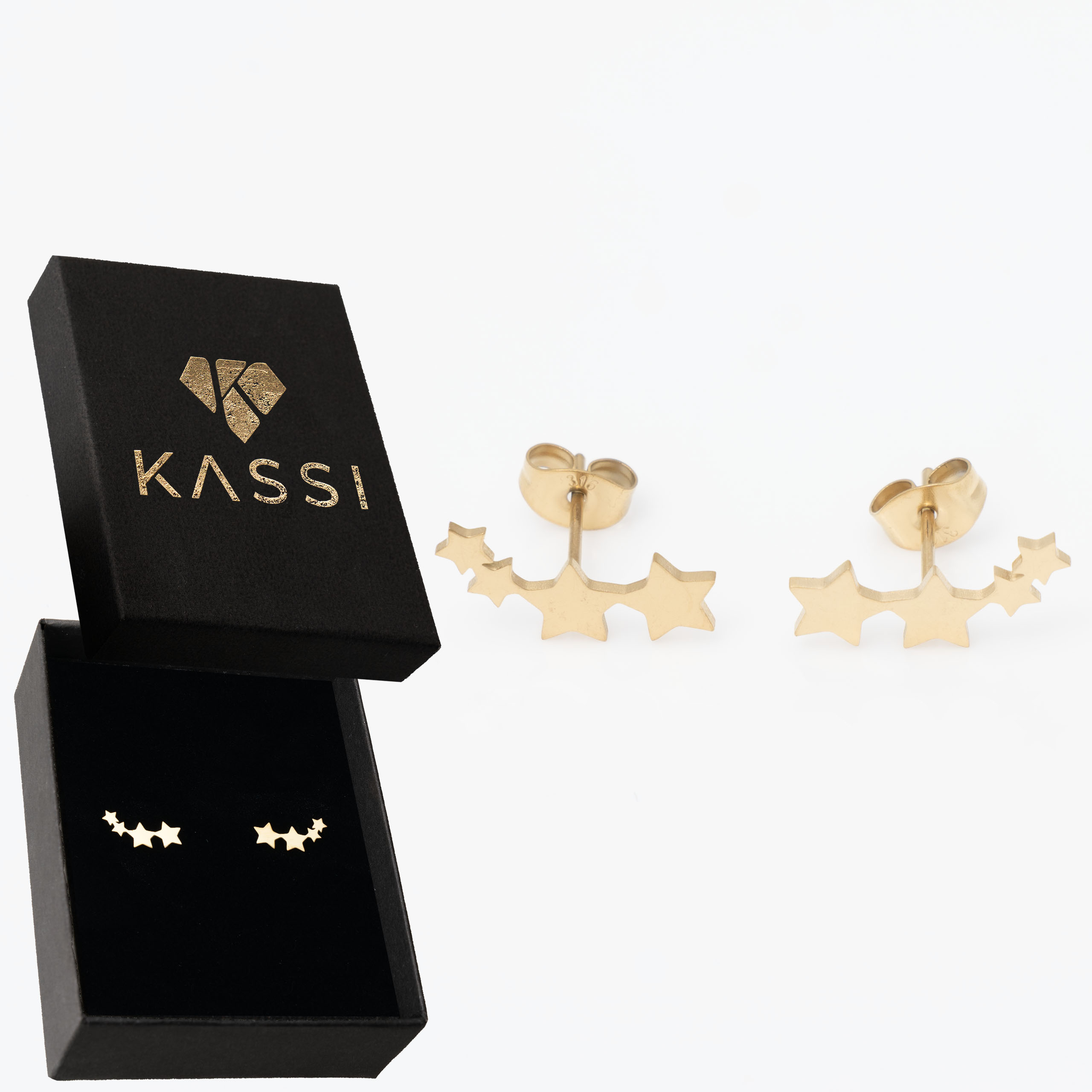 Strona główna | Sklep | Kolczyki | Kolczyki pozłacane stal chirurgiczna sztyft gwiazdki wiszące złote trzy gwiazdki