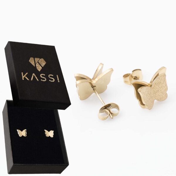 Strona główna | Sklep | Kolczyki | Kolczyki pozłacane stal chirurgiczna sztyft motylki złote delikatne motyle