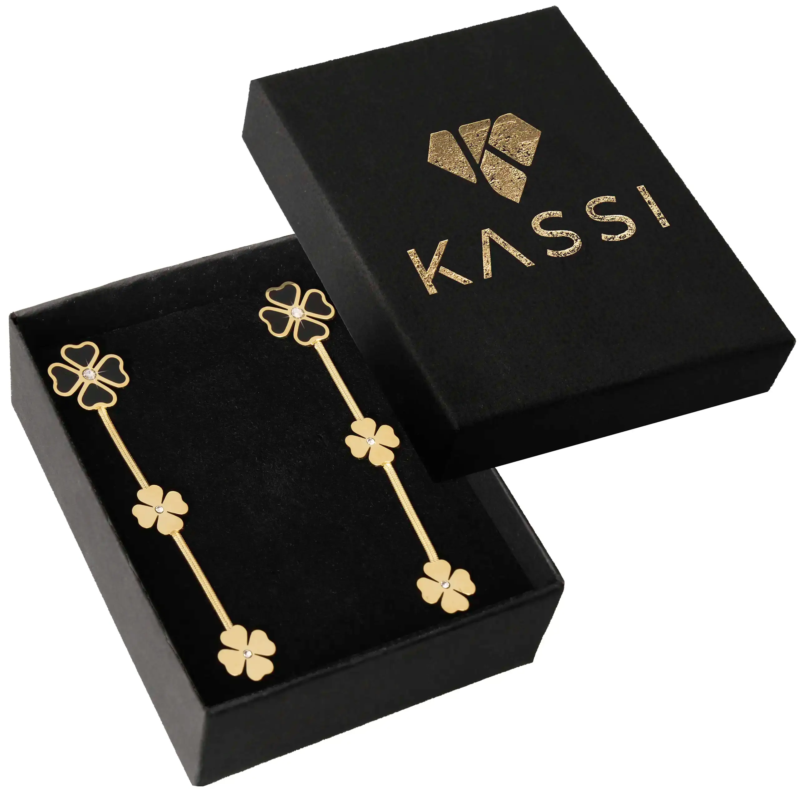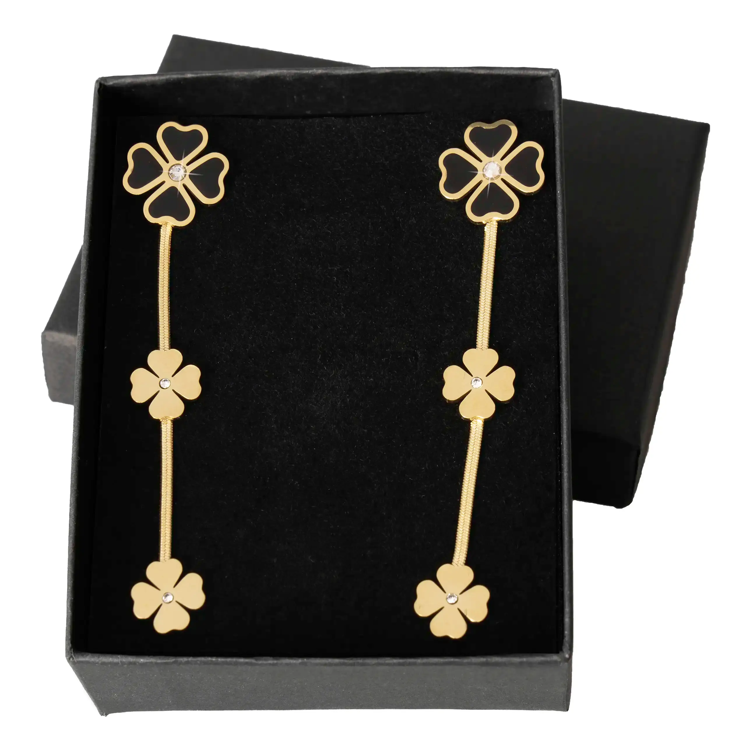 Strona główna | Sklep | Kolczyki | Kolczyki złote Koniczyna stal chirurgiczna stali pozłacane z czarnym czarne