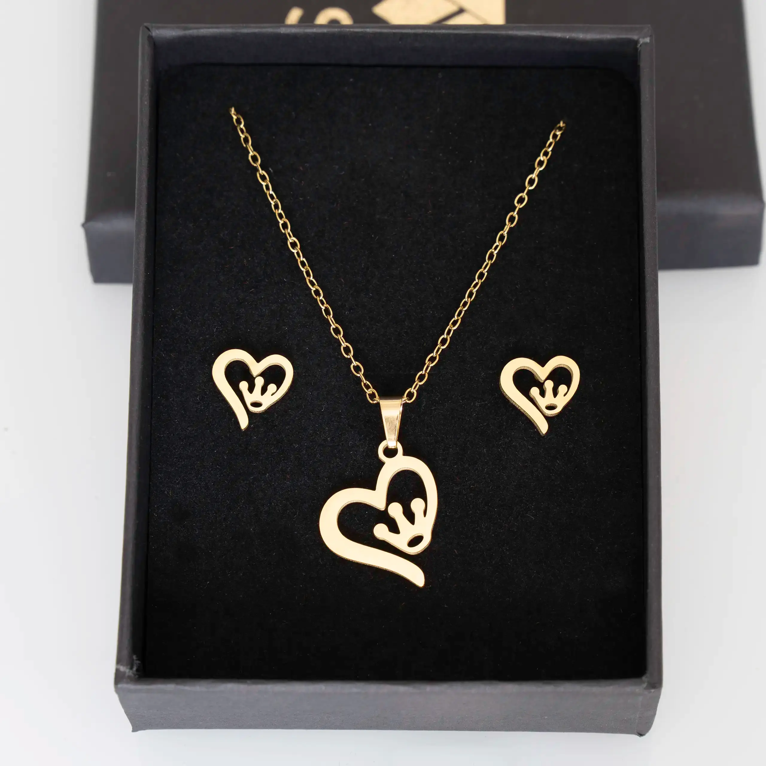 Strona główna | Sklep | Zestawy | Złoty Zestaw Kassi Serce z Koroną – Naszyjnik i Kolczyki Królewski Styl