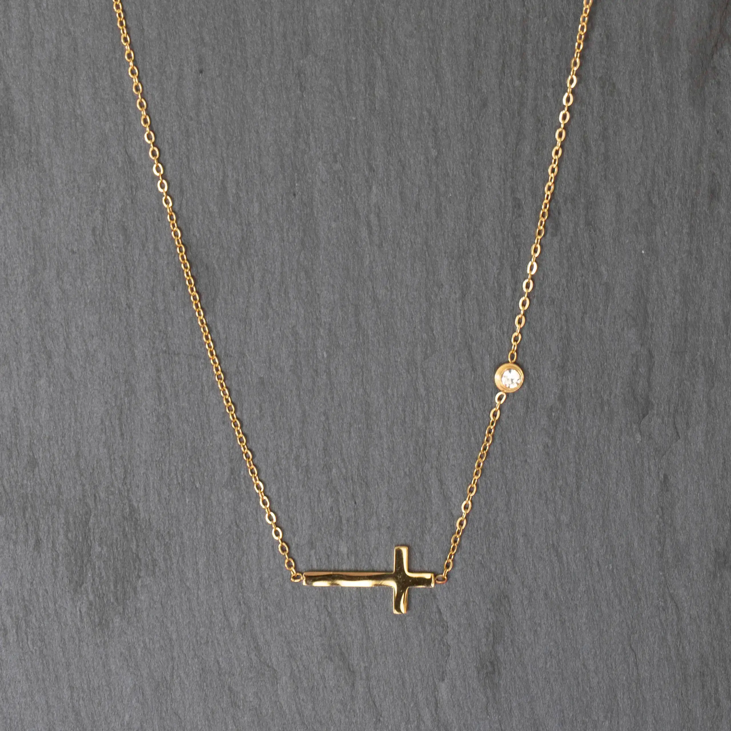Strona główna | Sklep | Naszyjniki | Naszyjnik z krzyżykiem złoty damski stal chirurgiczna krzyżyk 585 krzyż