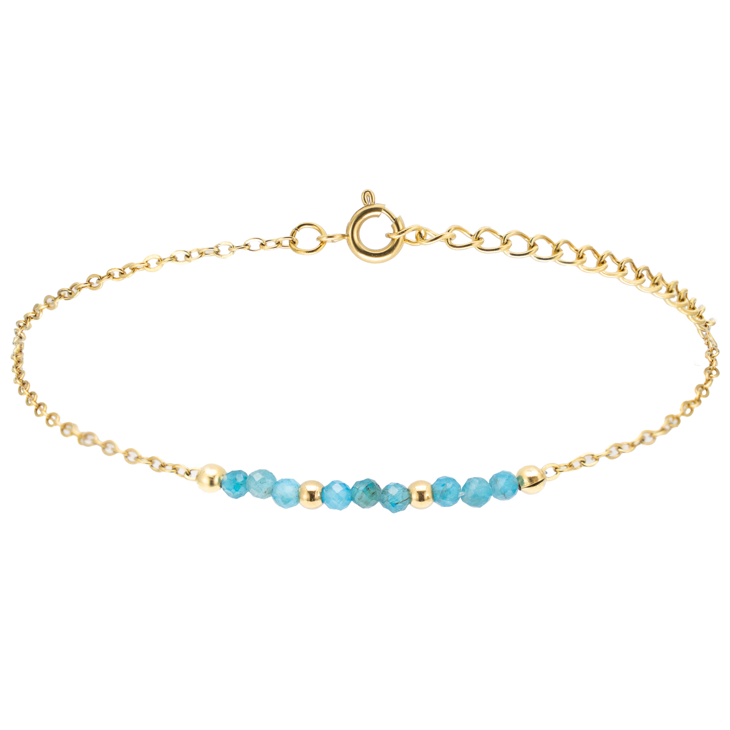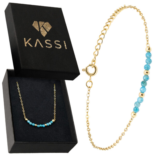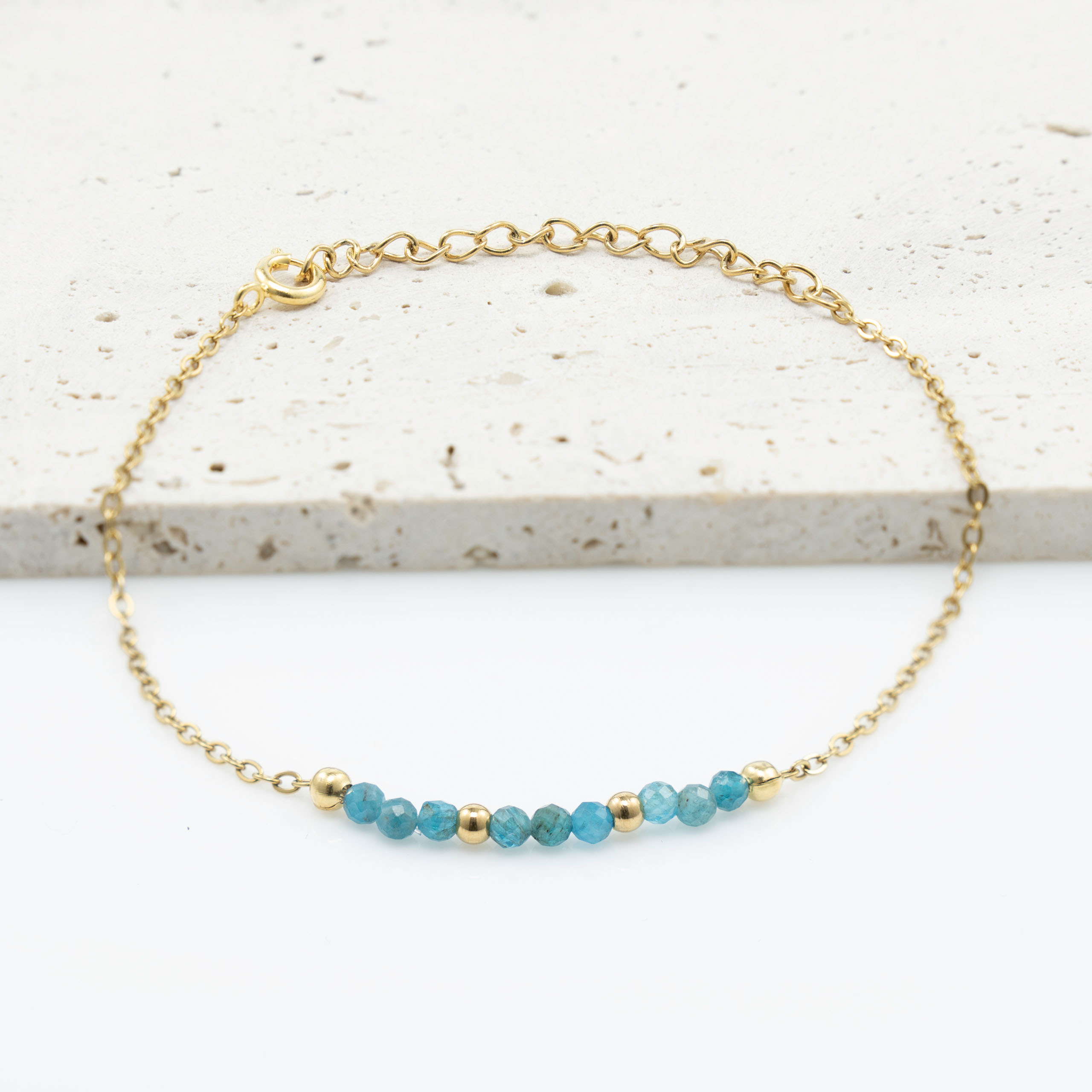 Strona główna | Sklep | Bransoletki | Modna bransoletka z apatytem – pozłacana stal chirurgiczna biżuteria