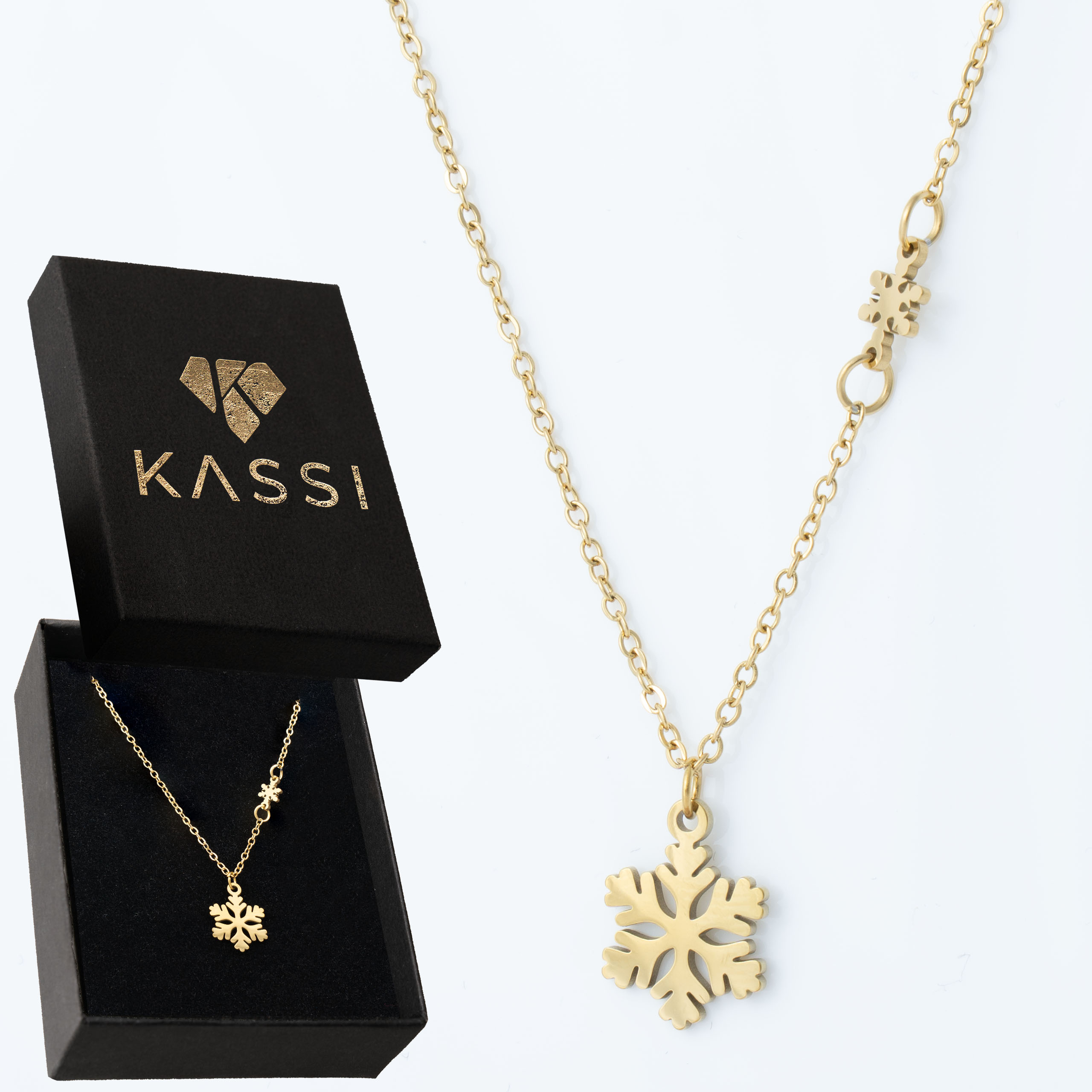 Naszyjnik, który wygląda jak mały kryształ lodu złapany w złoto – delikatny, elegancki i pełen zimowego czaru. Stal 316L z ciepłą złotą powłoką – lekki jak śnieżynka, a jednocześnie trwały i wygodny na co dzień.