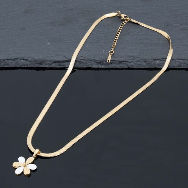 Strona główna | Sklep | Naszyjniki | Pozłacany naszyjnik stal chirurgiczna łańcuszek żmijka kwiatek perła złoty
