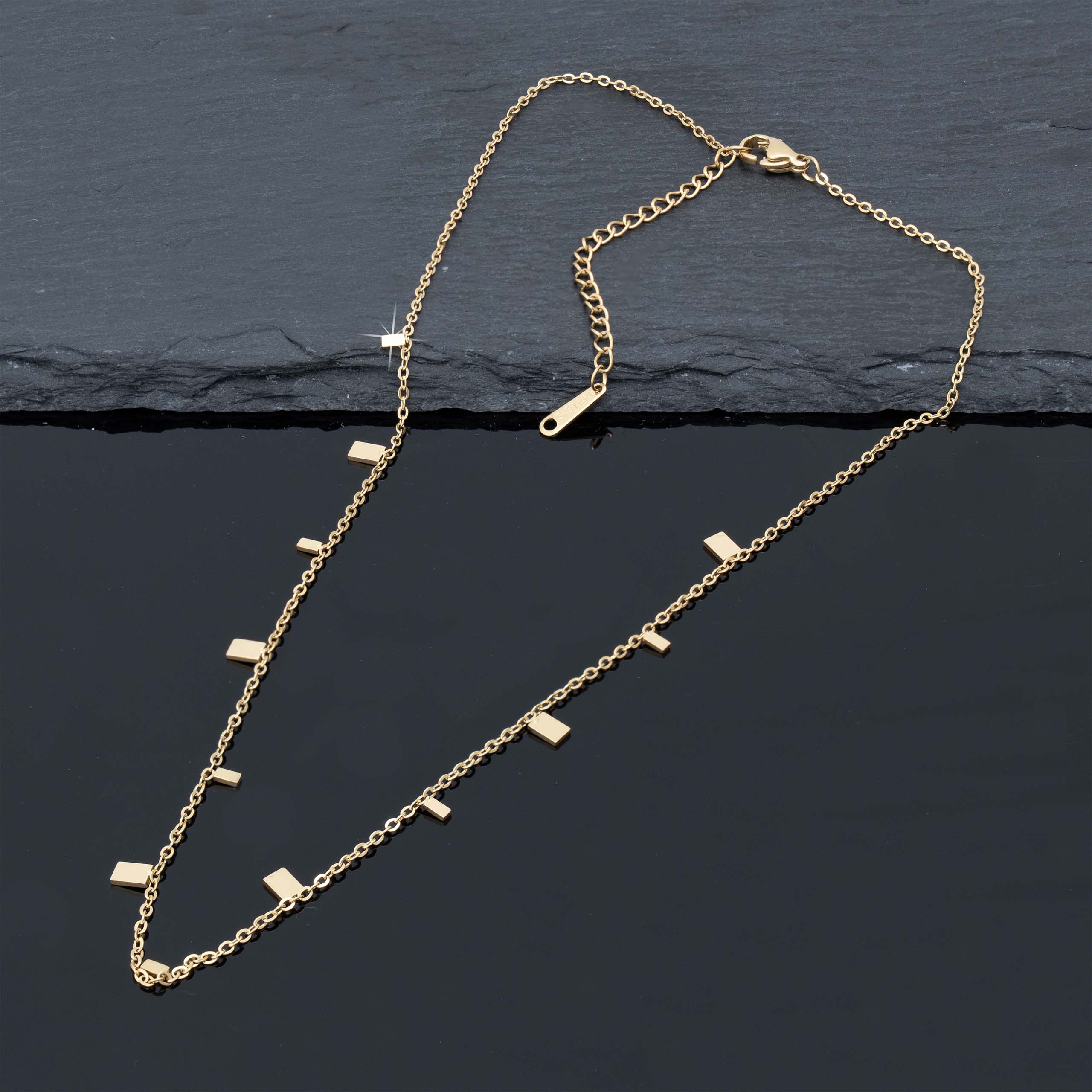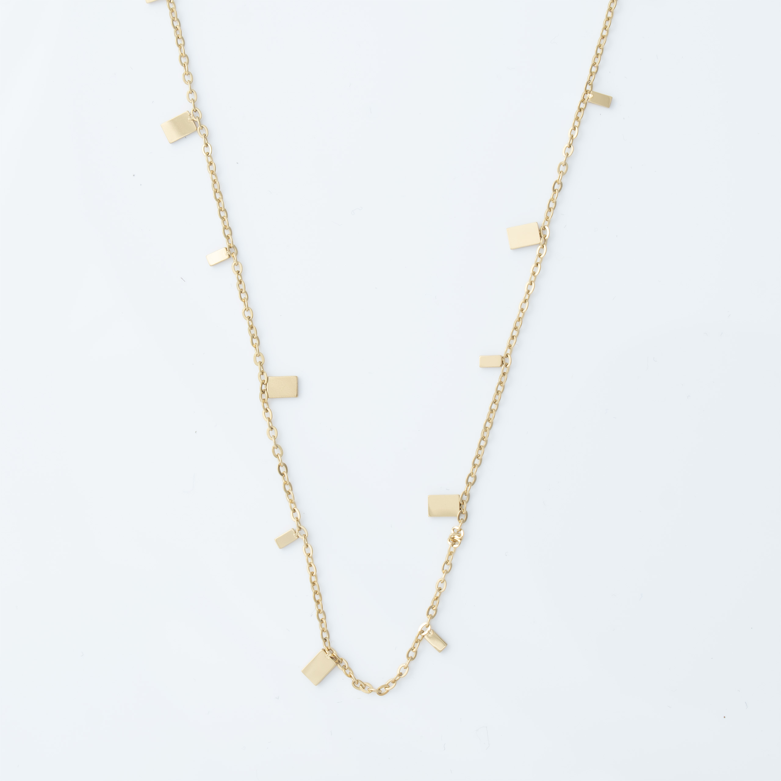 Strona główna | Sklep | Naszyjniki | Pozłacany naszyjnik stal chirurgiczna łańcuszek rozsypane prostokąty złote