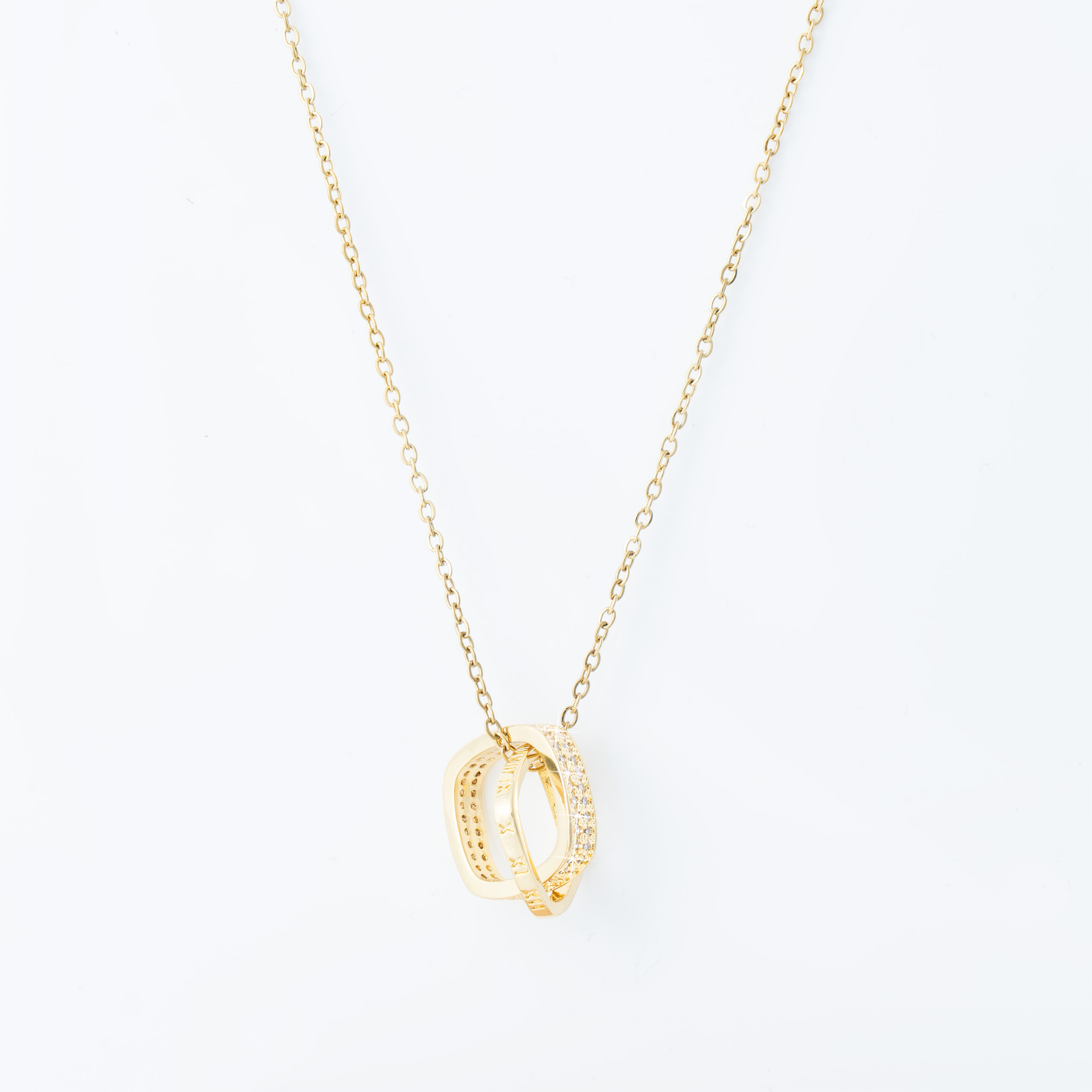 Strona główna | Sklep | Naszyjniki | Pozłacany naszyjnik stal chirurgiczna łańcuszek podwójne koło cyrkonie złote