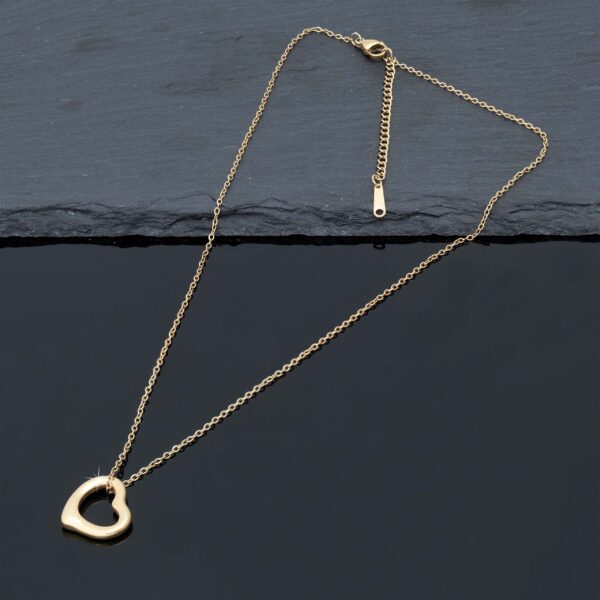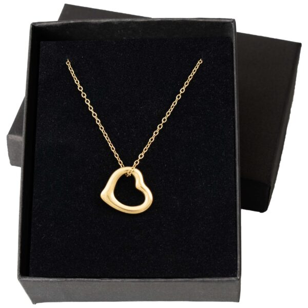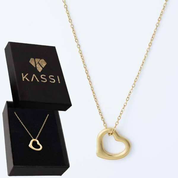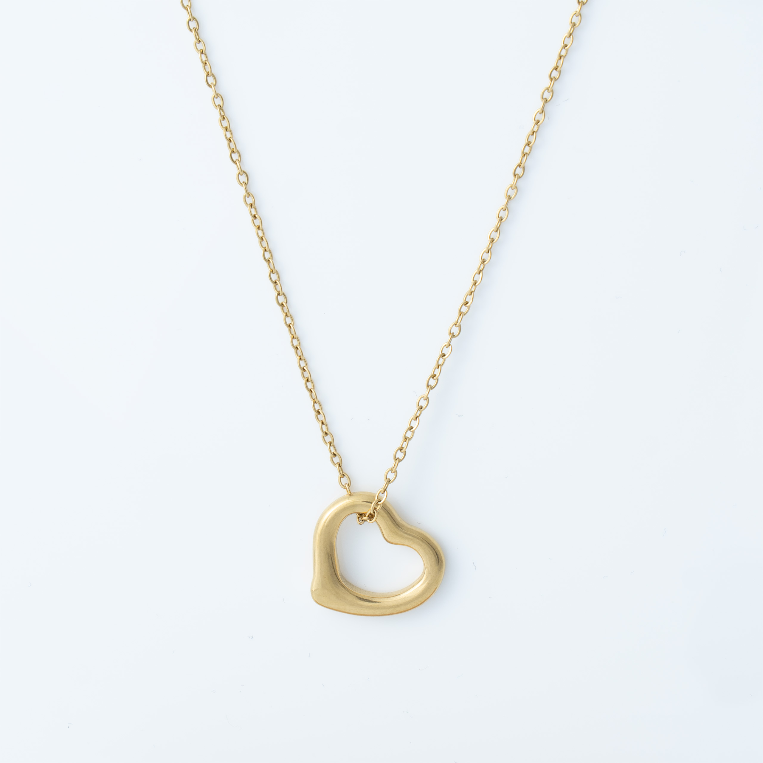 Naszyjnik, który wygląda jak delikatnie pofalowane, roztopione złoto uformowane w serce – ciepły odcień, organiczna forma i bardzo kobiecy charakter. Stal 316L z trwałą złotą powłoką – lekki jak nic i idealnie układa się na szyi.