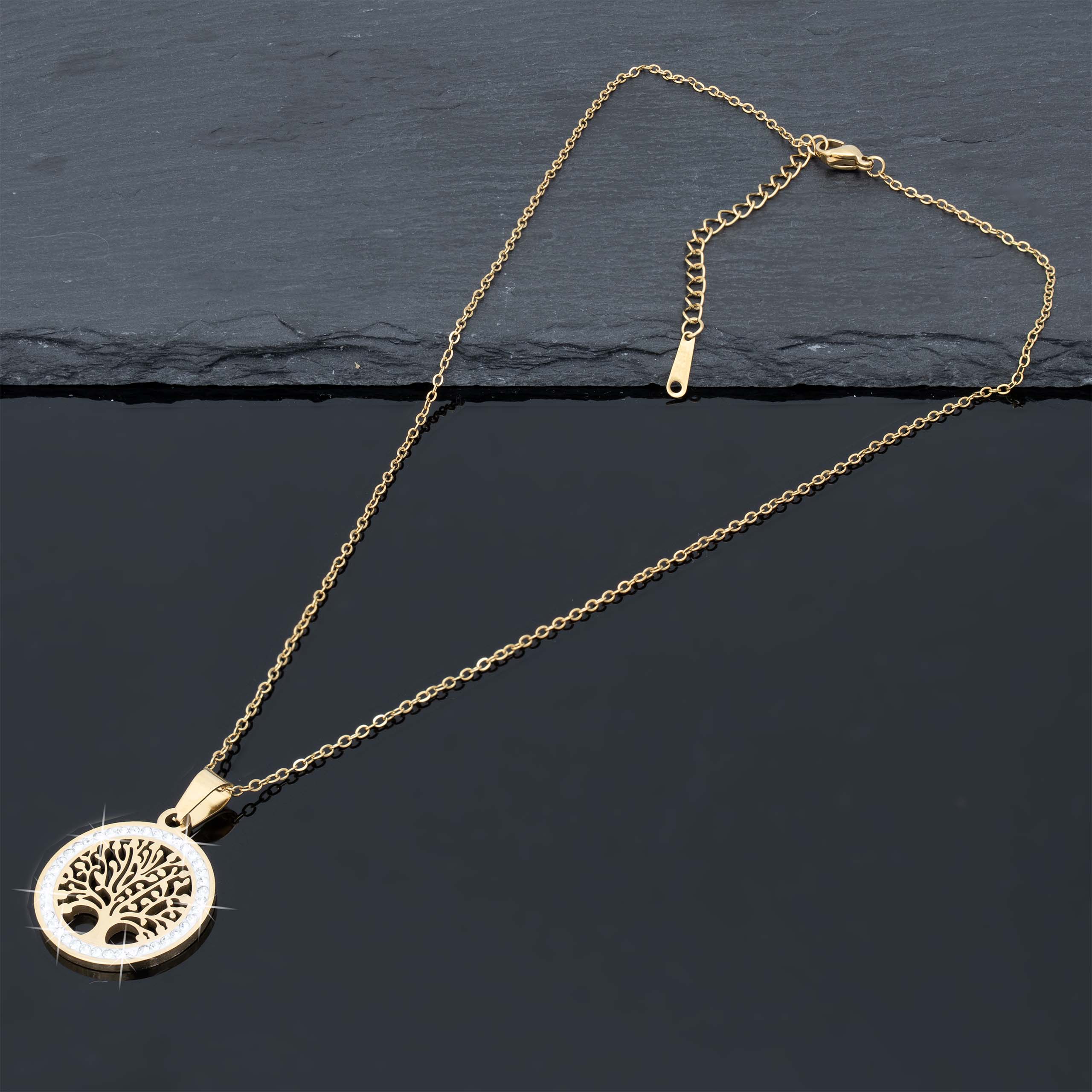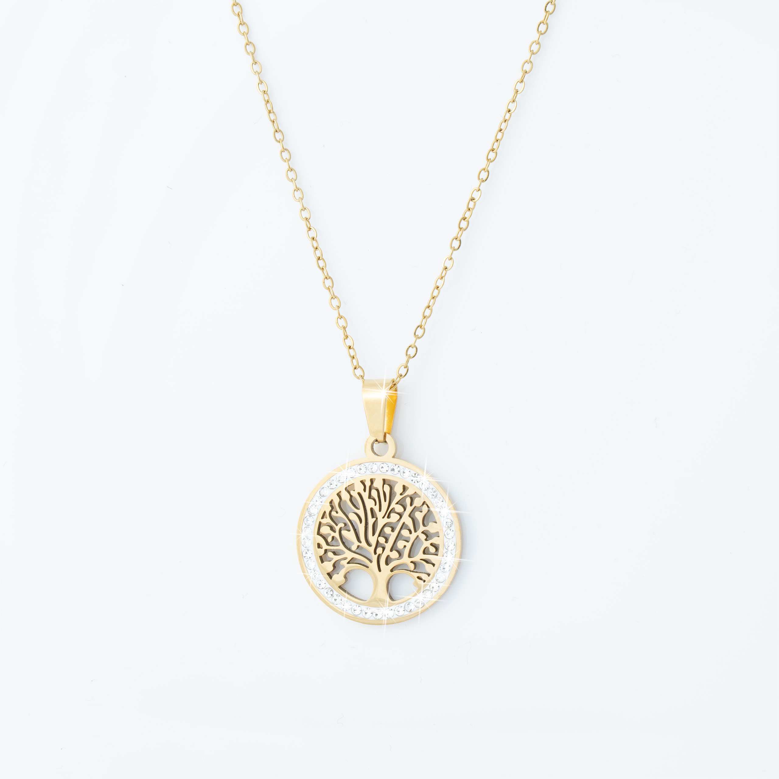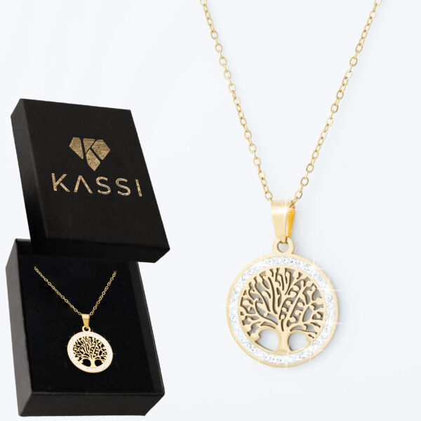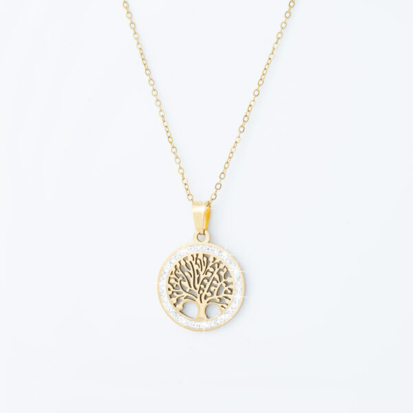 Strona główna | Sklep | Naszyjniki | Pozłacany naszyjnik stal chirurgiczna łańcuszek drzewo życia cyrkonie złoty