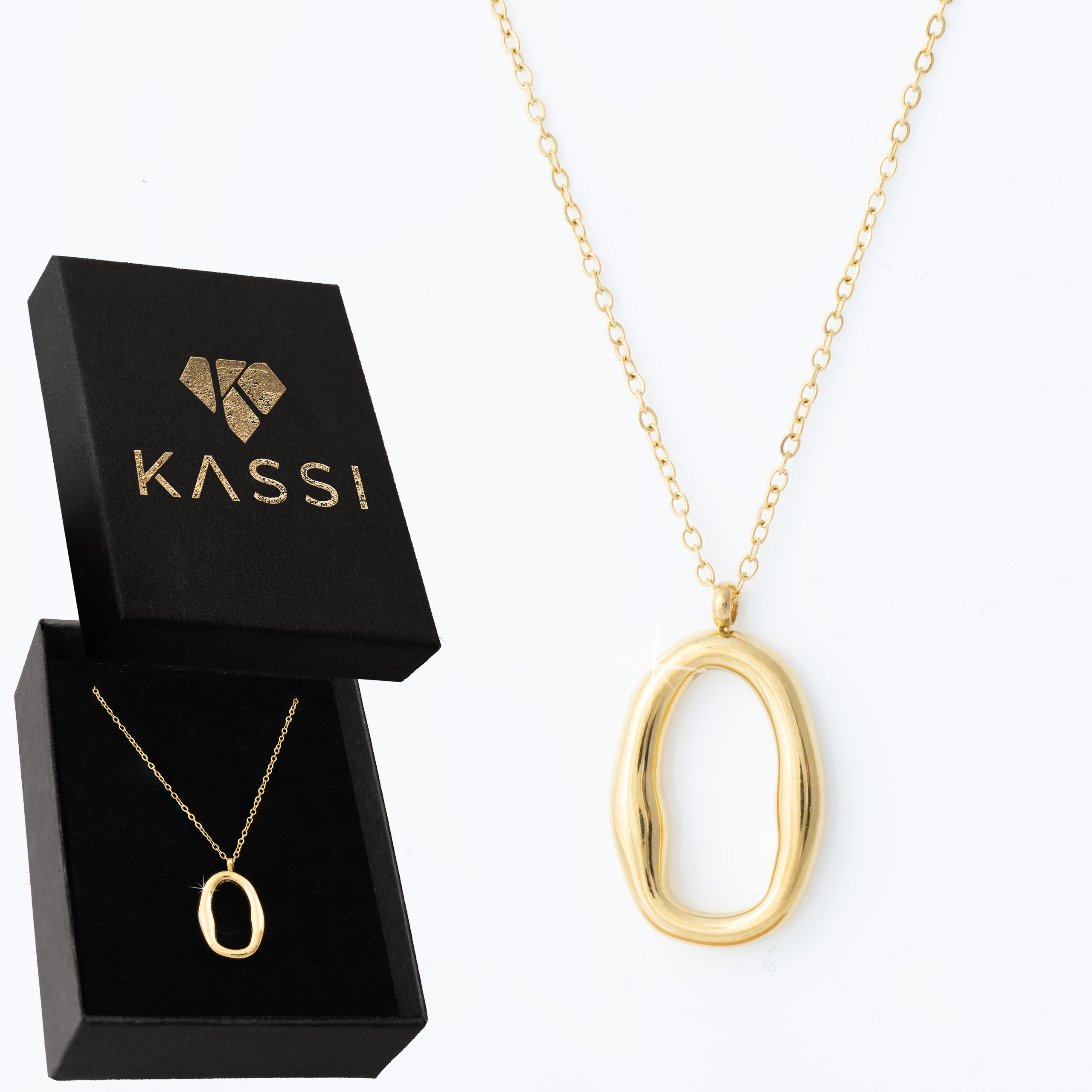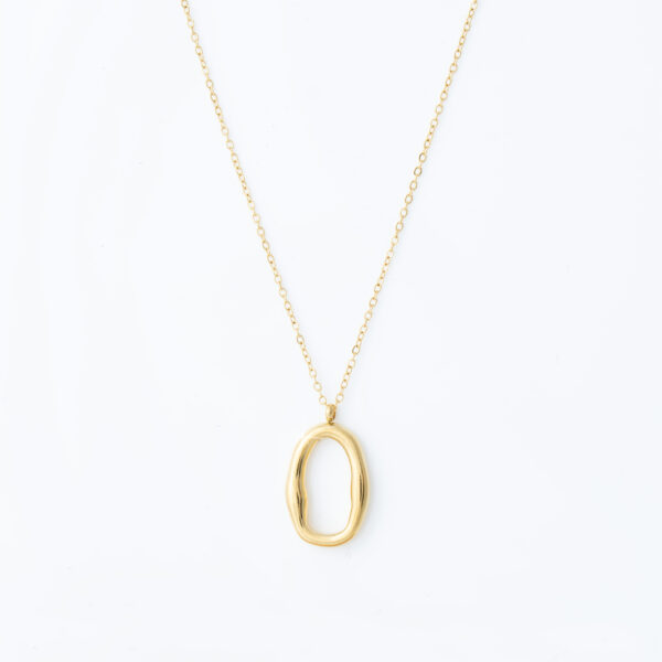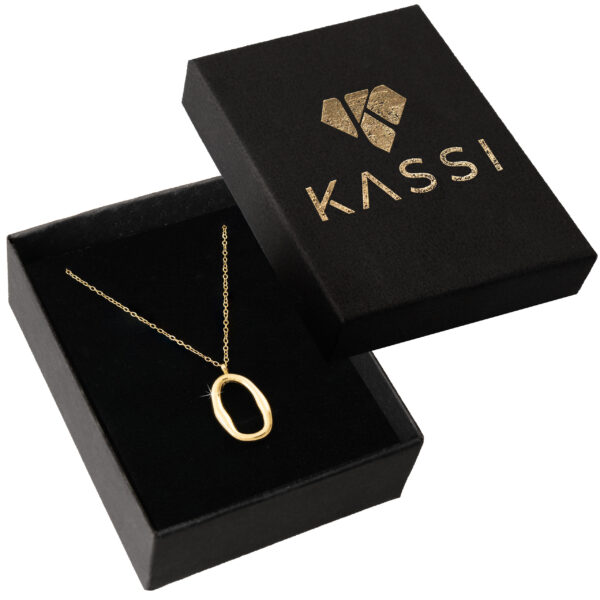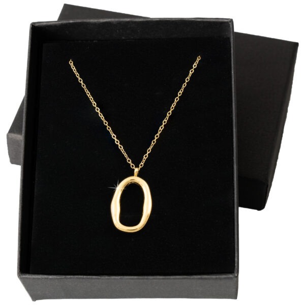Organiczny, asymetryczny owal na cienkim łańcuszku daje biżuterii artystyczny, prawie rzeźbiarski charakter – to nie jest klasyczny model, tylko prawdziwy, designerski detal. Noszony codziennie przyciąga spojrzenia, jest wygodny i szybko staje się ulubionym elementem kolekcji.
