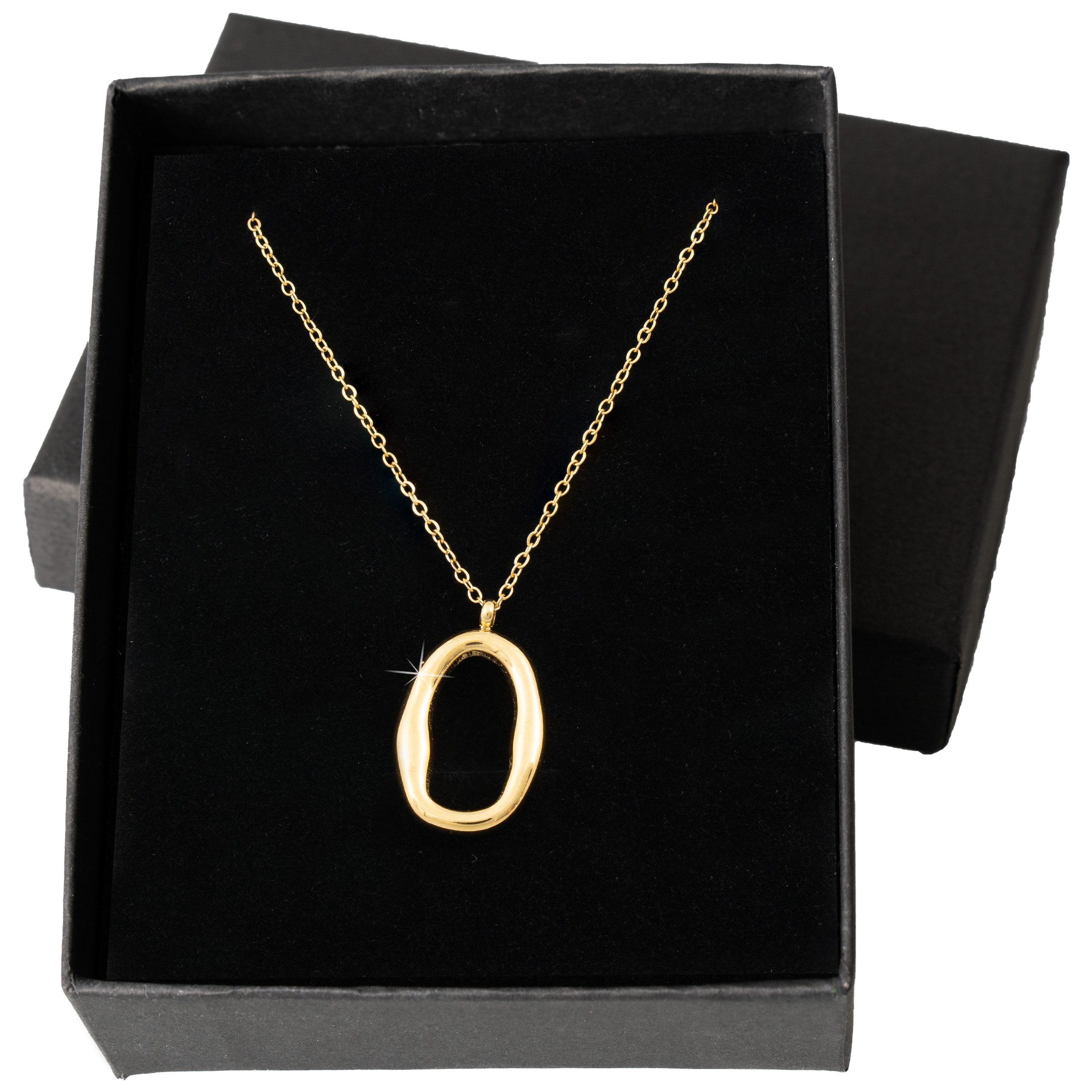 Pozłacany naszyjnik ze stali chirurgicznej 316L w ciepłym, złotym odcieniu. Bardzo lekki, minimalistyczny i pełen charakteru – idealny na co dzień, do biura, na randkę lub jako subtelny, designerski dodatek do każdej garderoby.