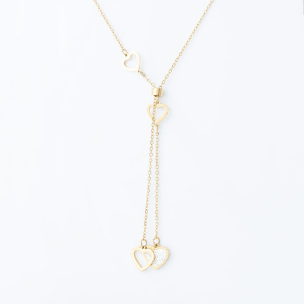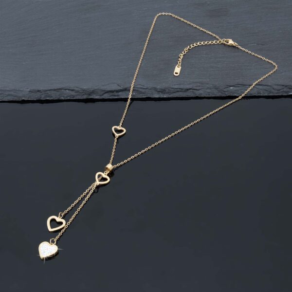 Strona główna | Sklep | Naszyjniki | Pozłacany naszyjnik stal chirurgiczna łańcuszek serca cyrkonie lariat złoty