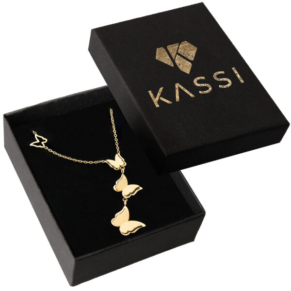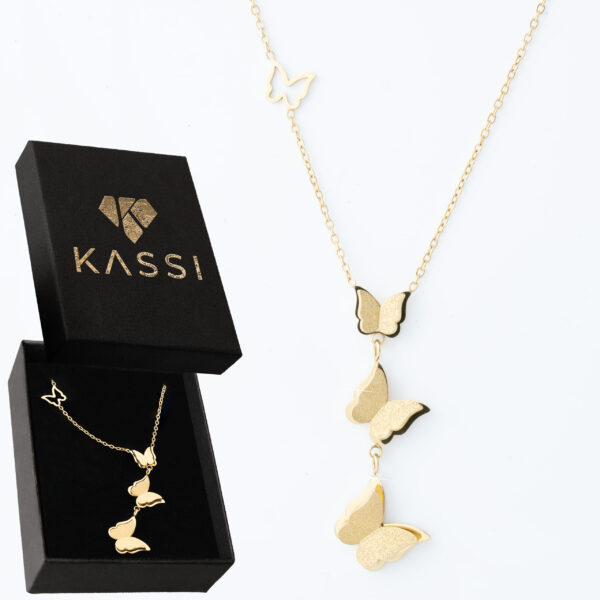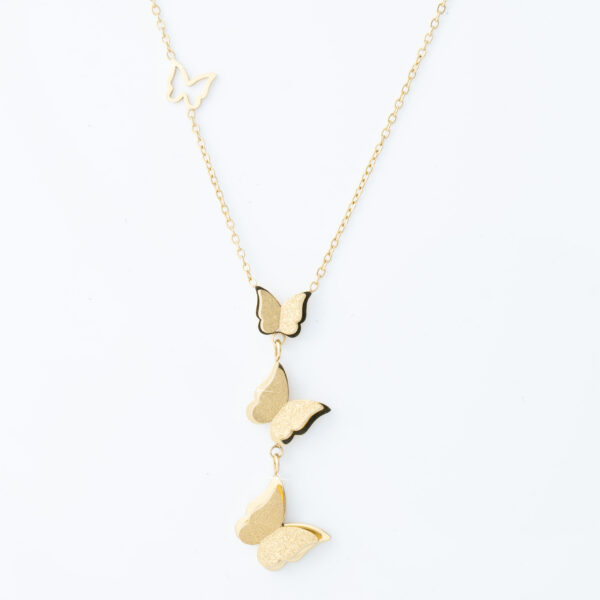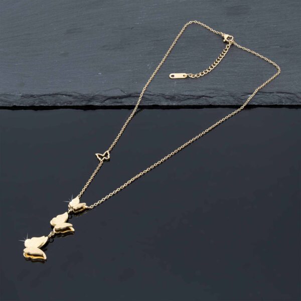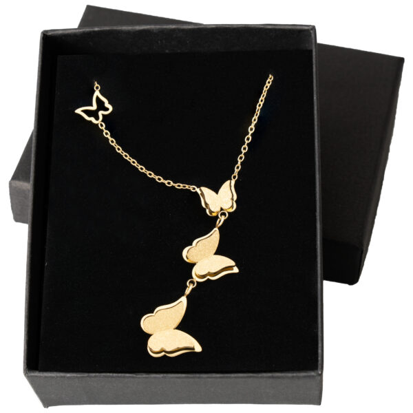 Strona główna | Sklep | Naszyjniki | Pozłacany naszyjnik stal chirurgiczna łańcuszek motylki trzy motyle złote