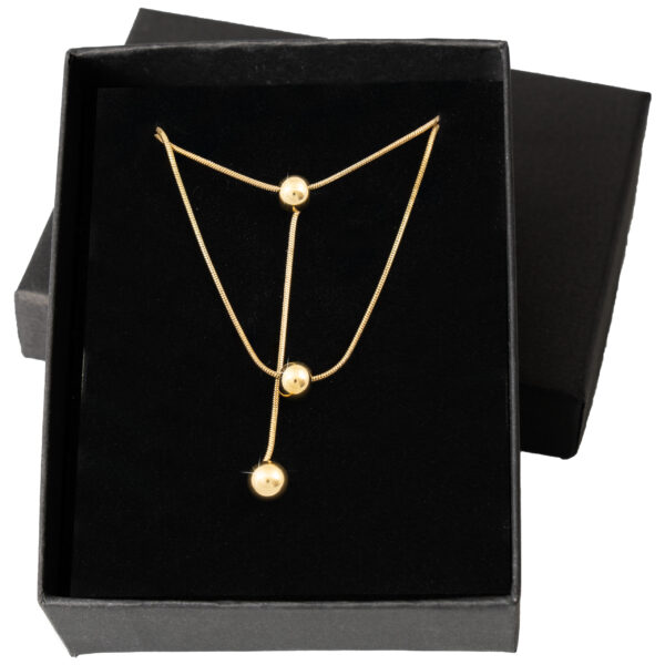 Połączenie podwójnego łańcuszka z kuleczkami w formie lariat daje biżuterii nowoczesny, dynamiczny charakter – model, który przyciąga spojrzenia, jest wygodny i uniwersalny. To jeden z tych naszyjników, które nosi się z przyjemnością codziennie i szybko staje się ulubionym elementem kolekcji.