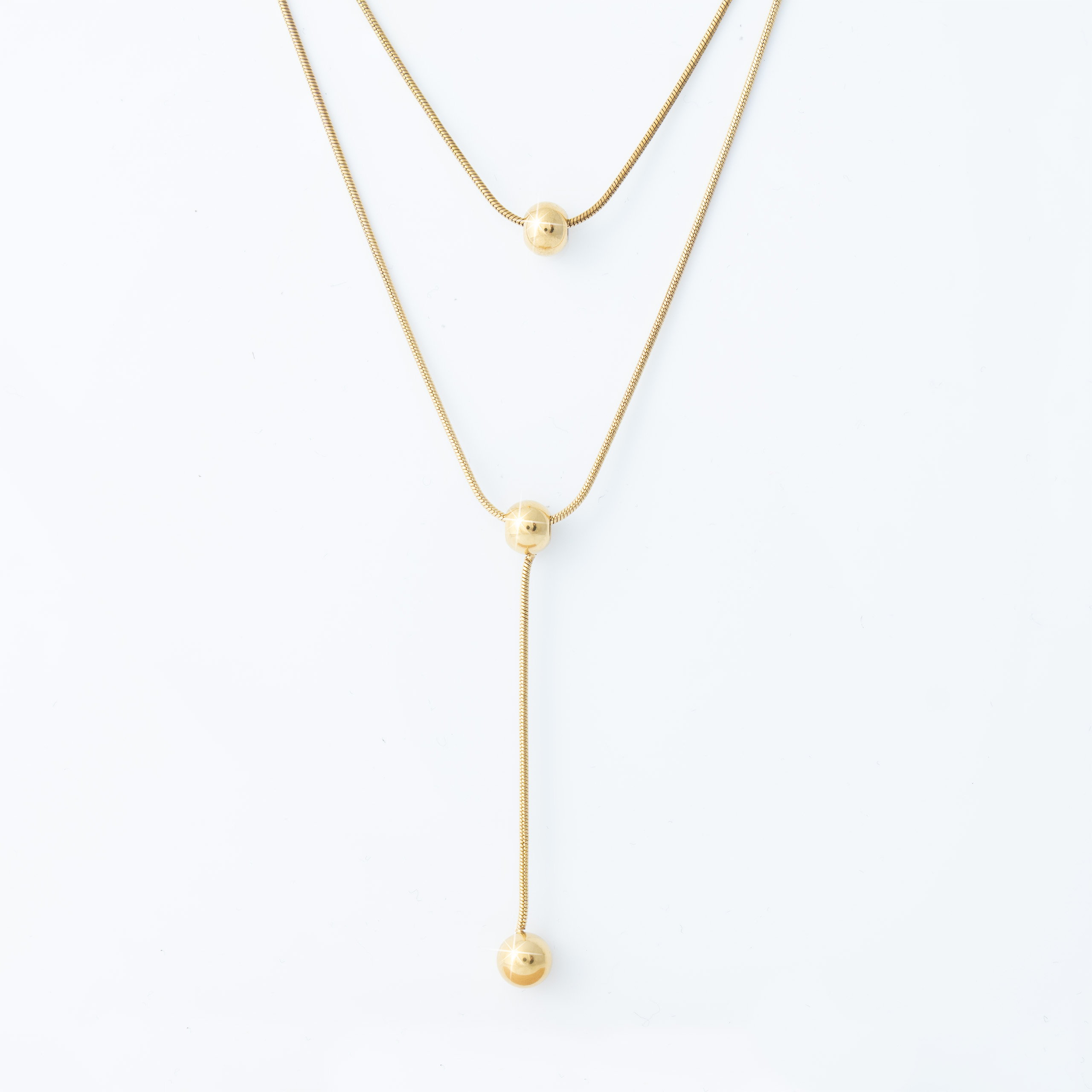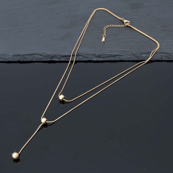 Strona główna | Sklep | Naszyjniki | Pozłacany naszyjnik stal chirurgiczna podwójny łańcuszek kuleczki lariat złoty