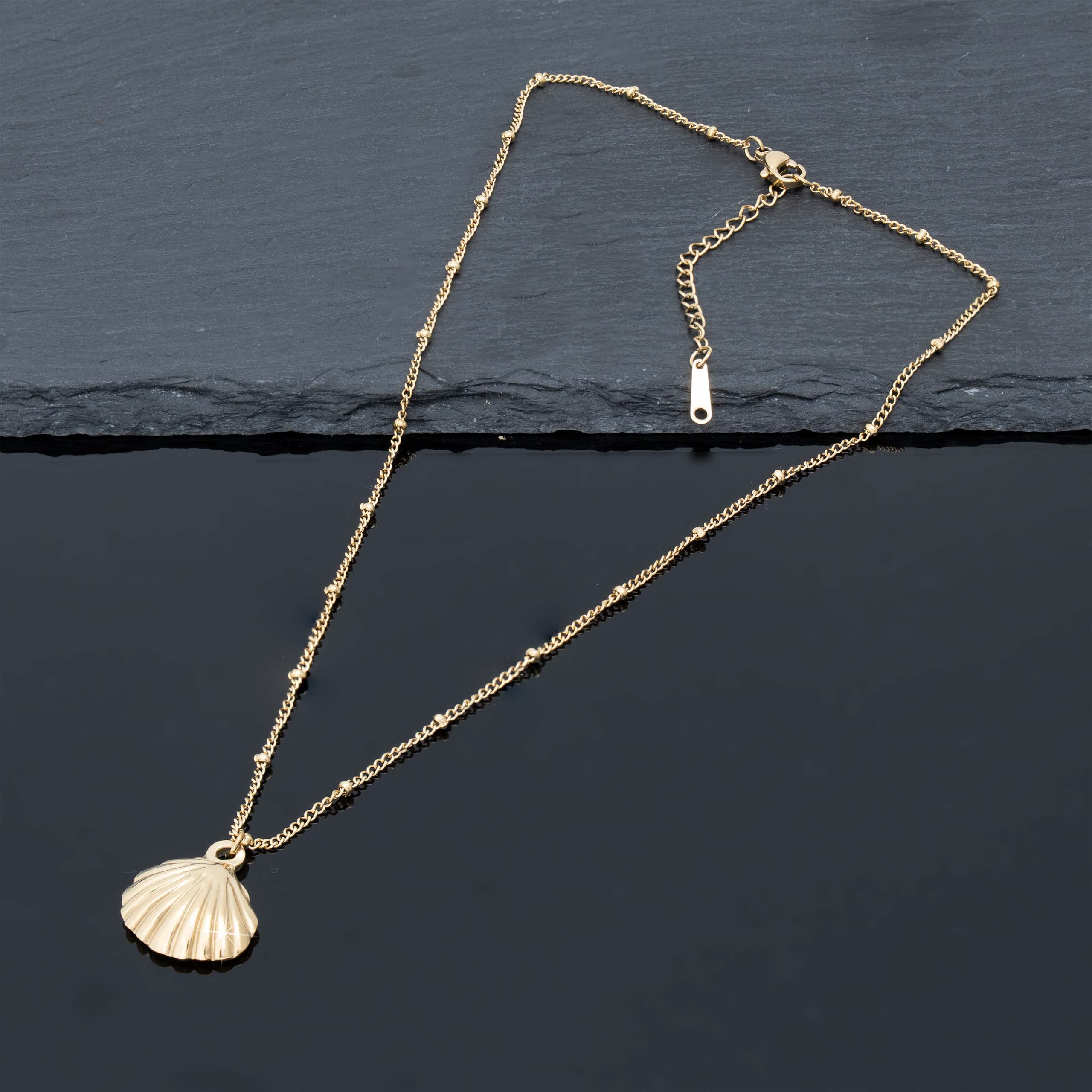 Strona główna | Sklep | Naszyjniki | Pozłacany naszyjnik stal chirurgiczna łańcuszek z kuleczkami muszelka złota