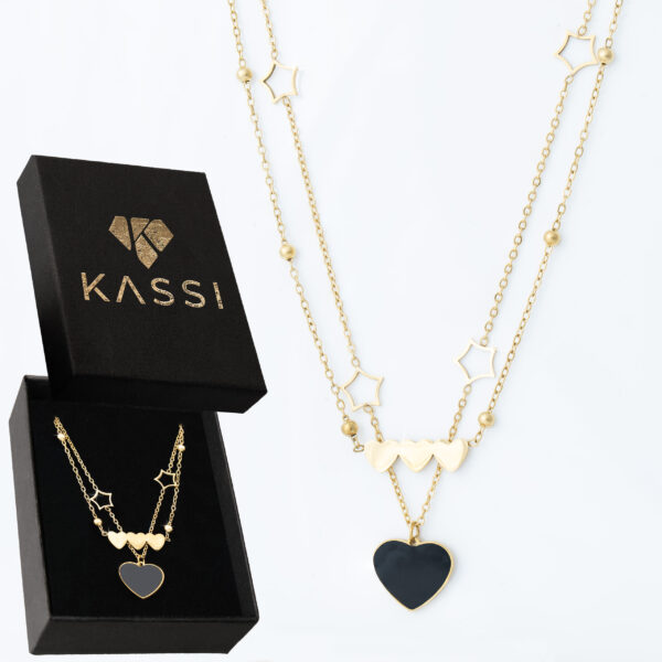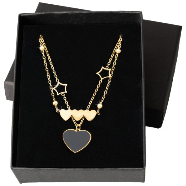 Połączenie serca, gwiazdy i potrójnego serca w wielowarstwowej formie daje biżuterii wyjątkowy charakter – symbolizuje miłość, marzenia i bliskość. To model, który przyciąga komplementy, jest wygodny w noszeniu i szybko staje się ulubionym elementem kolekcji.