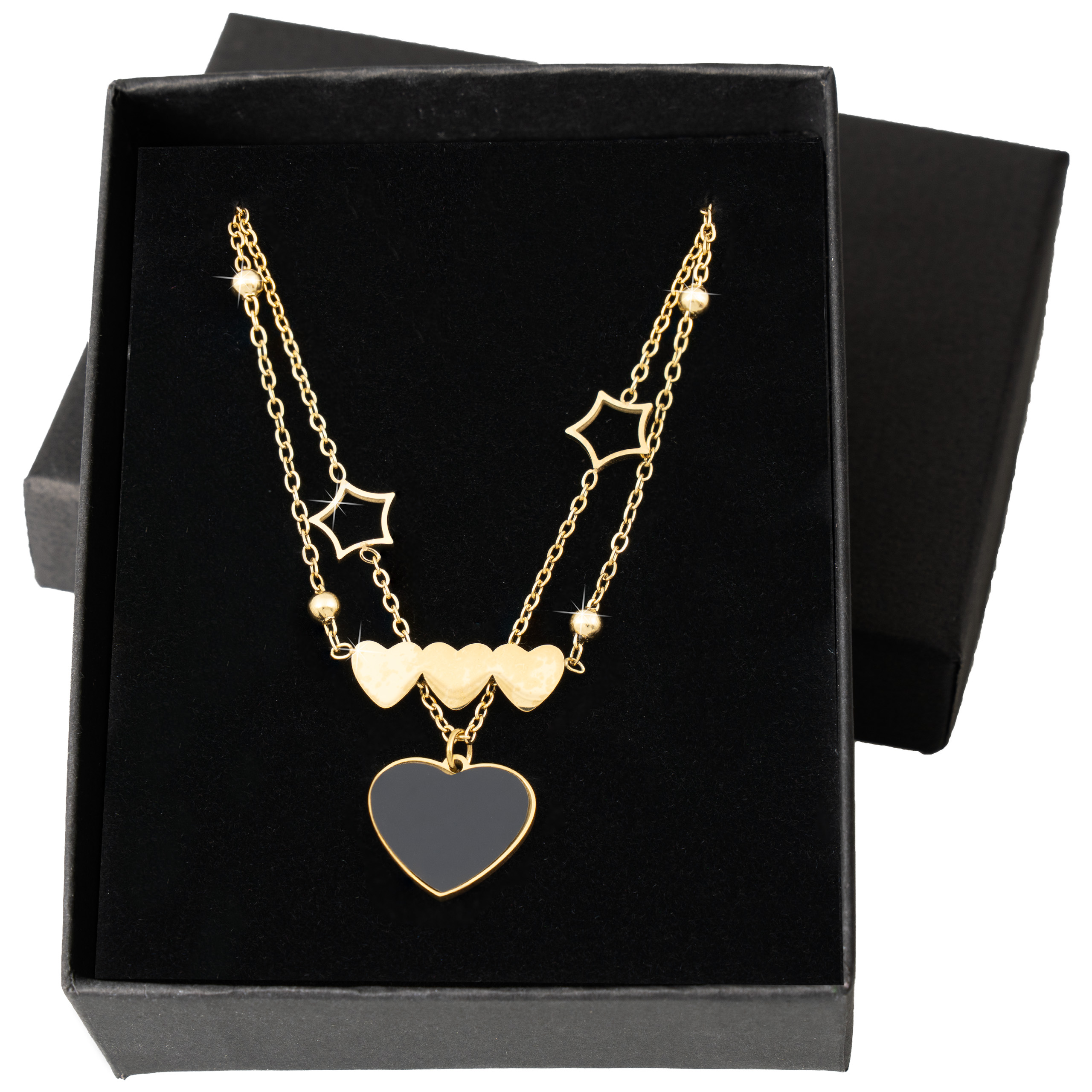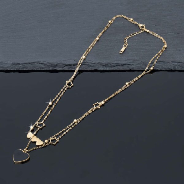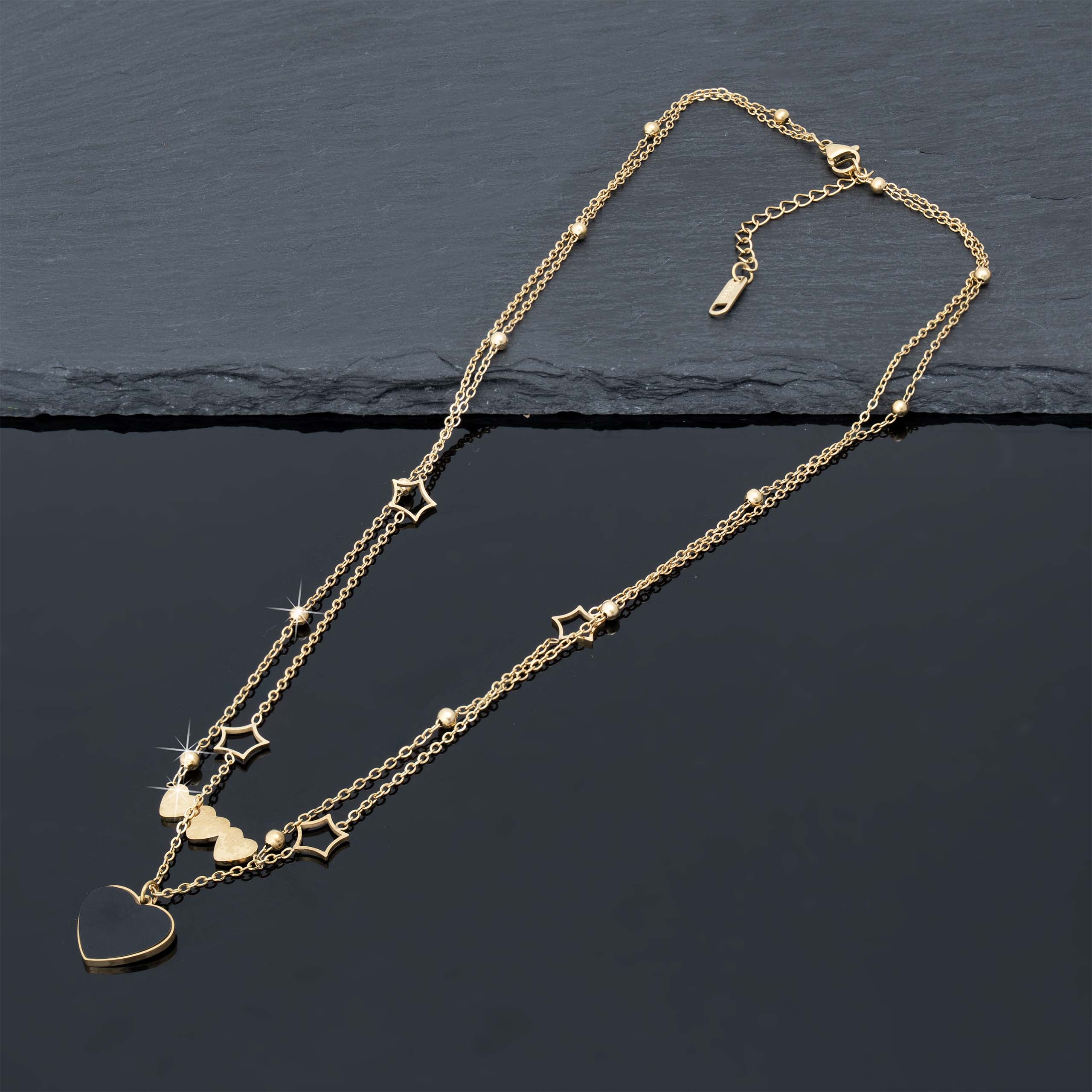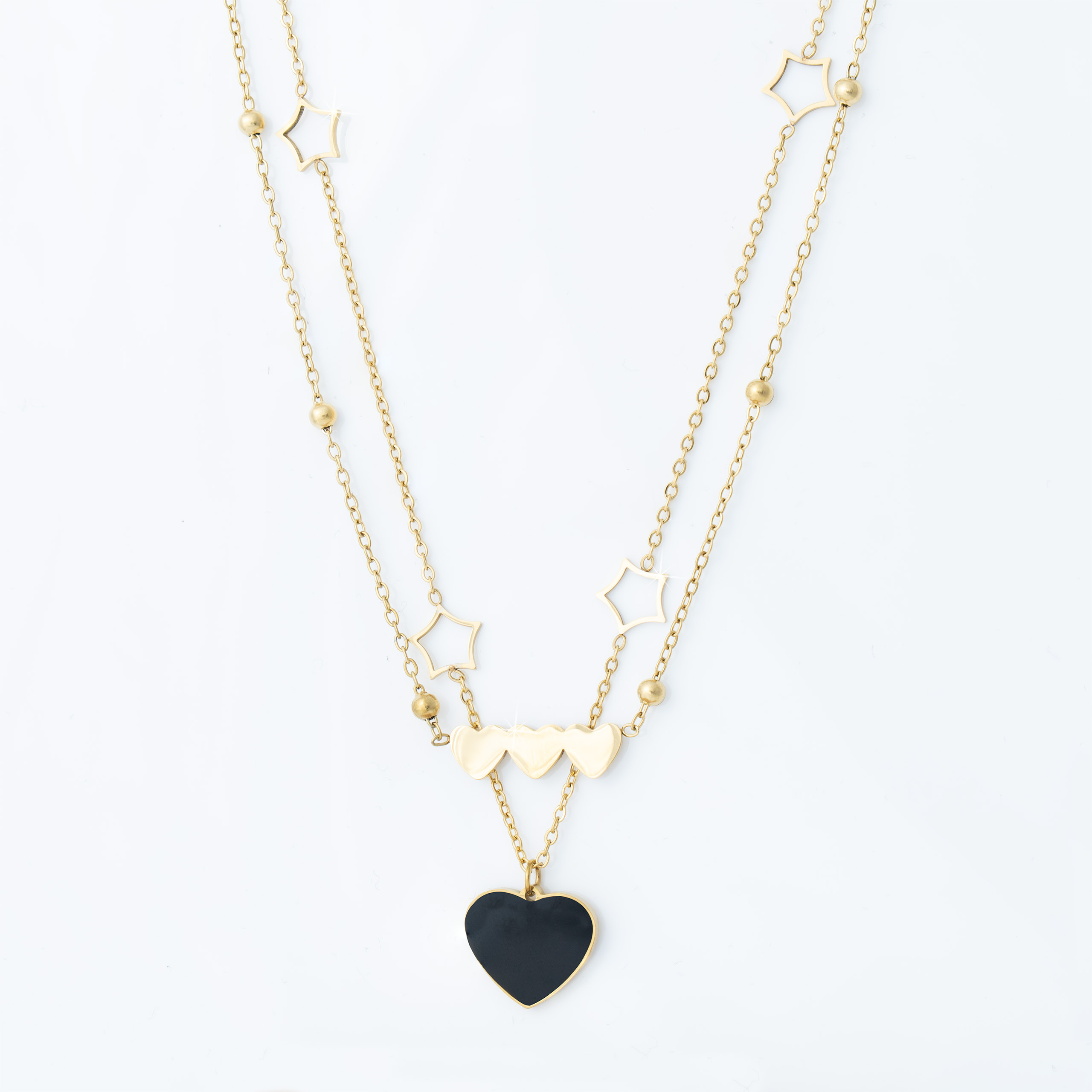 Strona główna | Sklep | Naszyjniki | Pozłacany naszyjnik stal chirurgiczna podwójny łańcuszek serce gwiazdy potrójne serce złoty
