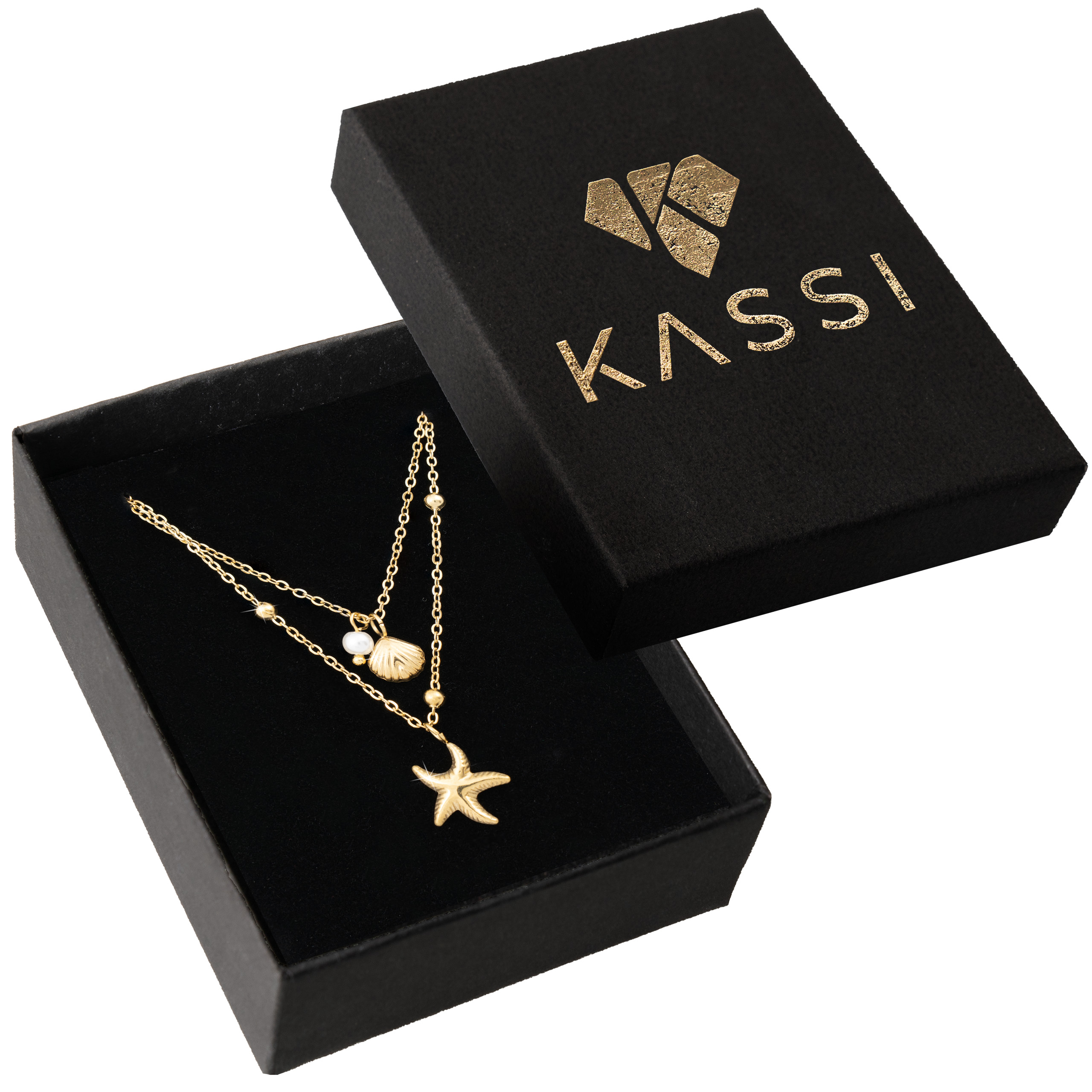 Połączenie rozgwiazdy, muszelki i perły w złotym wydaniu daje efektowny, ale subtelny marynistyczny vibe – biżuteria, która przywołuje wspomnienia morza i lata. To model, który nosi się z uśmiechem i szybko staje się ulubionym dodatkiem na ciepłe dni.