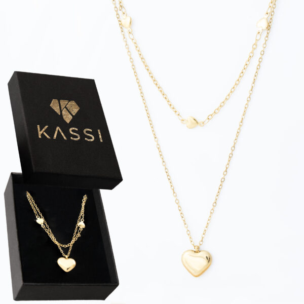 Połączenie podwójnego łańcuszka z serduszkami tworzy efektowny, ale nienachalny look – biżuteria, która przyciąga spojrzenia, a jednocześnie jest wygodna i ponadczasowa. To jeden z tych modeli, który szybko staje się ulubionym i noszony jest niemal codziennie.
