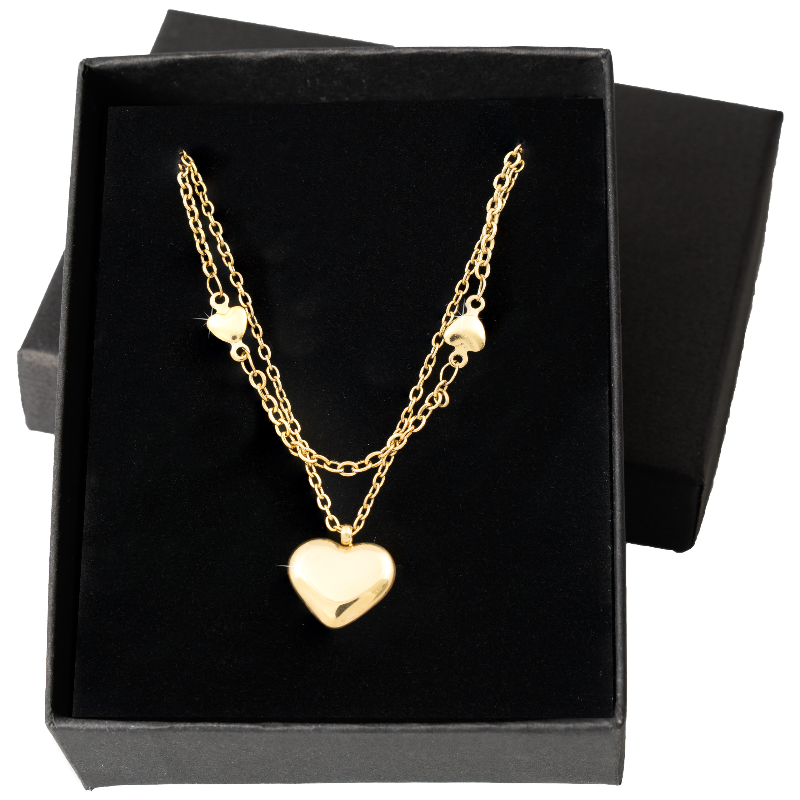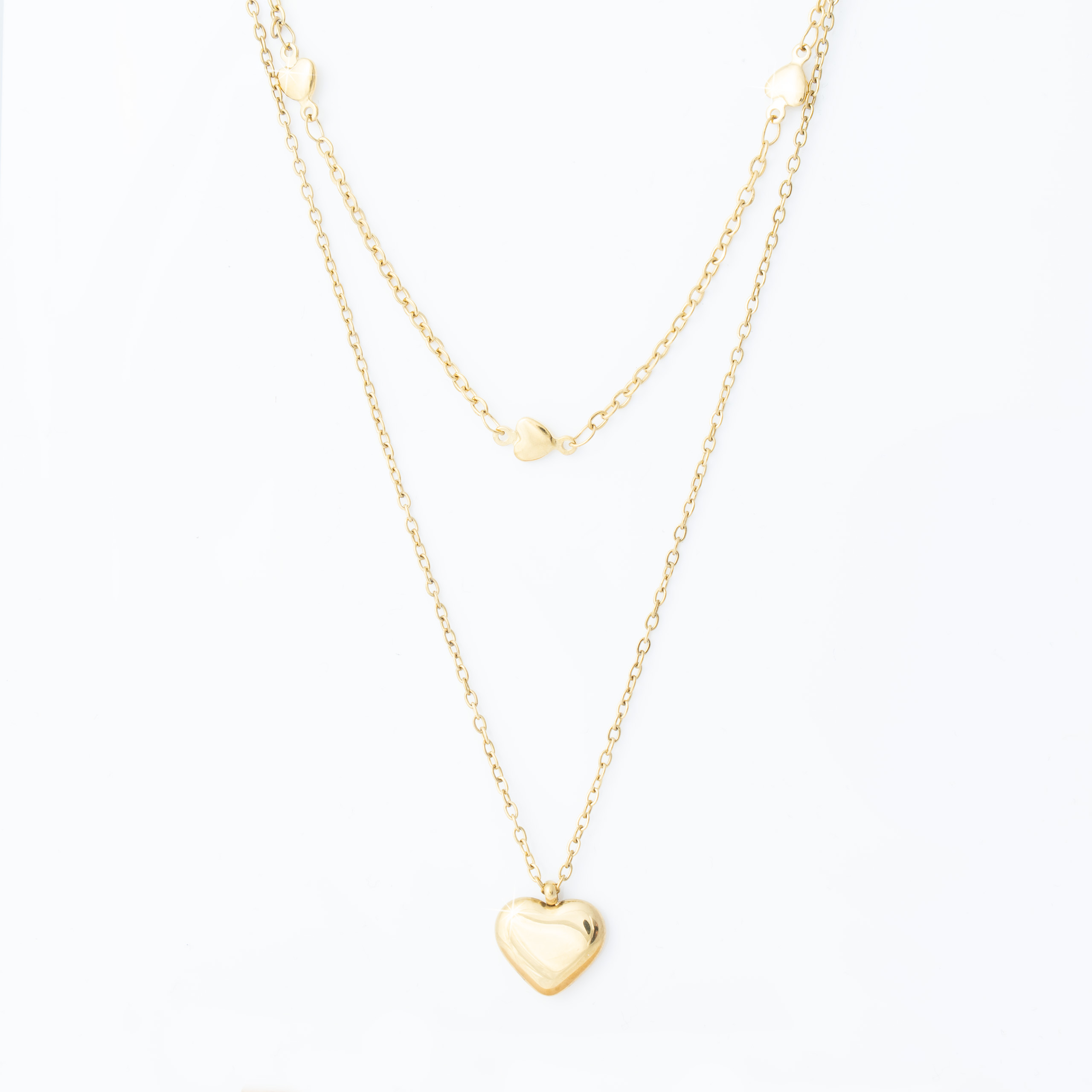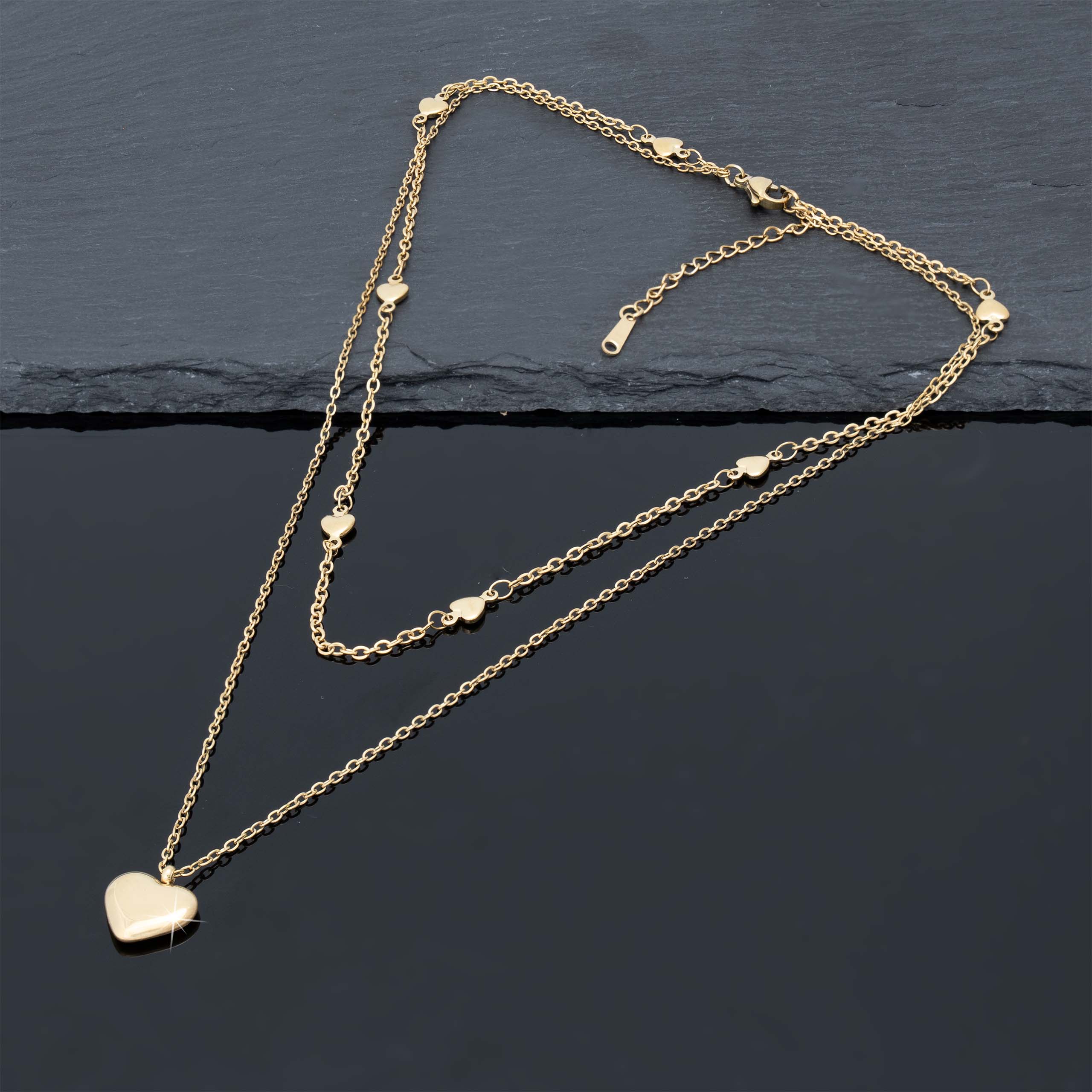 Strona główna | Sklep | Naszyjniki | Pozłacany naszyjnik stal chirurgiczna podwójny łańcuszek z serduszkiem i sercami