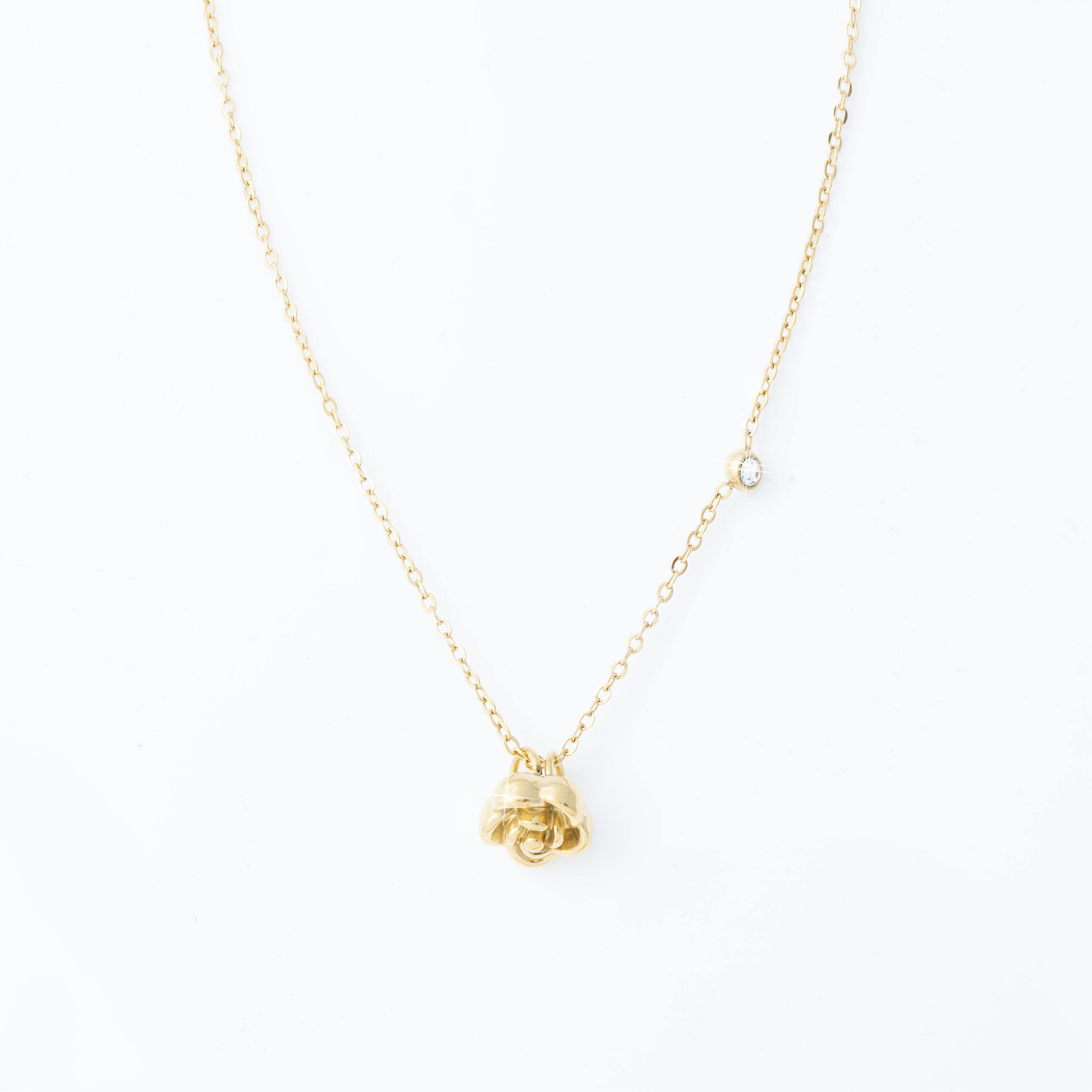 Pozłacany naszyjnik ze stali chirurgicznej 316L w ciepłym, złotym odcieniu. Delikatny, kobiecy i bardzo wdzięczny – idealny na co dzień oraz na romantyczne okazje.