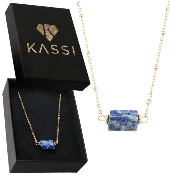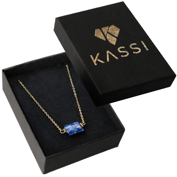 Ten majestatyczny naszyjnik łączy głęboki charakter z królewskim urokiem, będąc idealnym wyborem dla osób ceniących wyrazistą biżuterię. Wykonany z pozłacanej stali chirurgicznej, która gwarantuje trwałość i hipoalergiczne właściwości, zapewnia komfort noszenia na co dzień. Centralnym punktem jest naturalny lapis lazuli – ręcznie oszlifowany kamień o intensywnie niebieskim odcieniu z złotymi pirytowymi inkluzjami, który emanuje luksusem i tajemniczością. Regulowany łańcuszek z precyzyjnym zapięciem oraz subtelnymi złotymi akcentami pozwala na idealne dopasowanie, a jego bogaty design pasuje zarówno do codziennych, jak i bardziej eleganckich stylizacji. Prezentowany w eleganckim czarnym pudełku, jest doskonałym wyborem jako prezent lub osobista ozdoba.