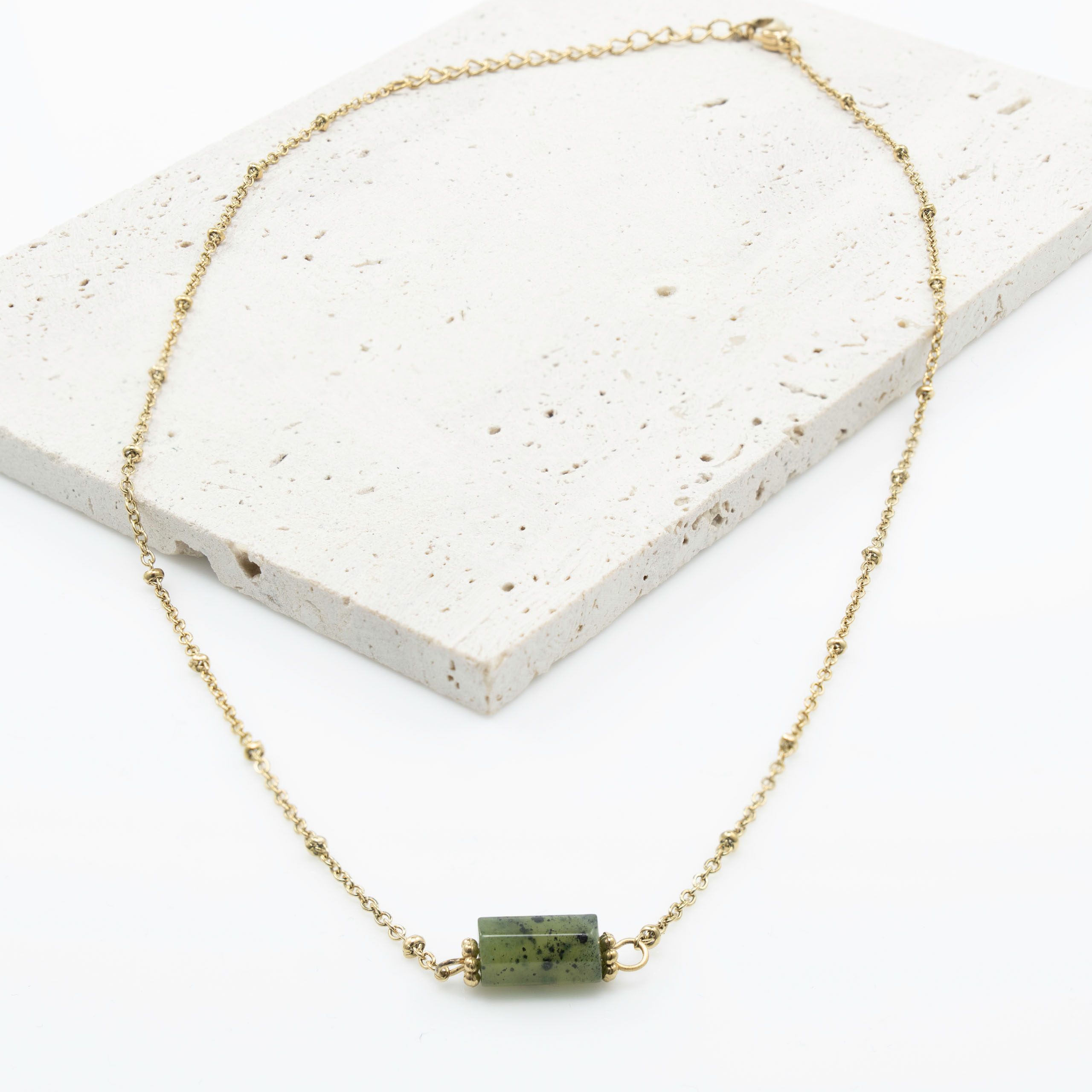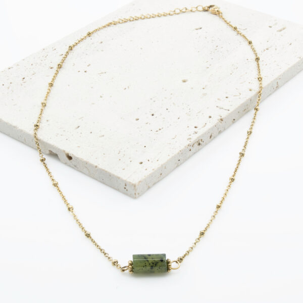 Strona główna | Sklep | Naszyjniki | Naszyjnik pozłacany ze stali chirurgicznej z Naturalnym Zielonym Jadeitem