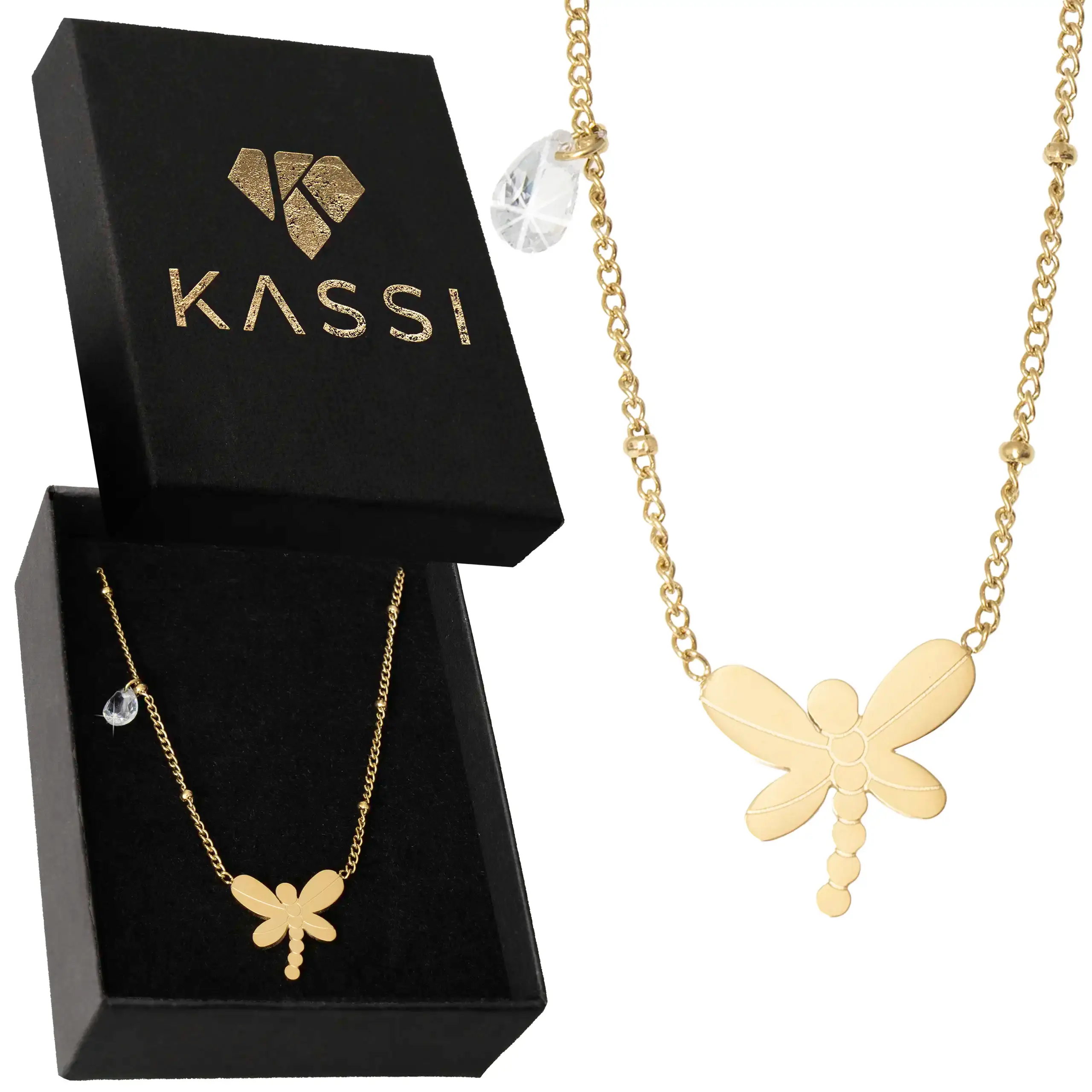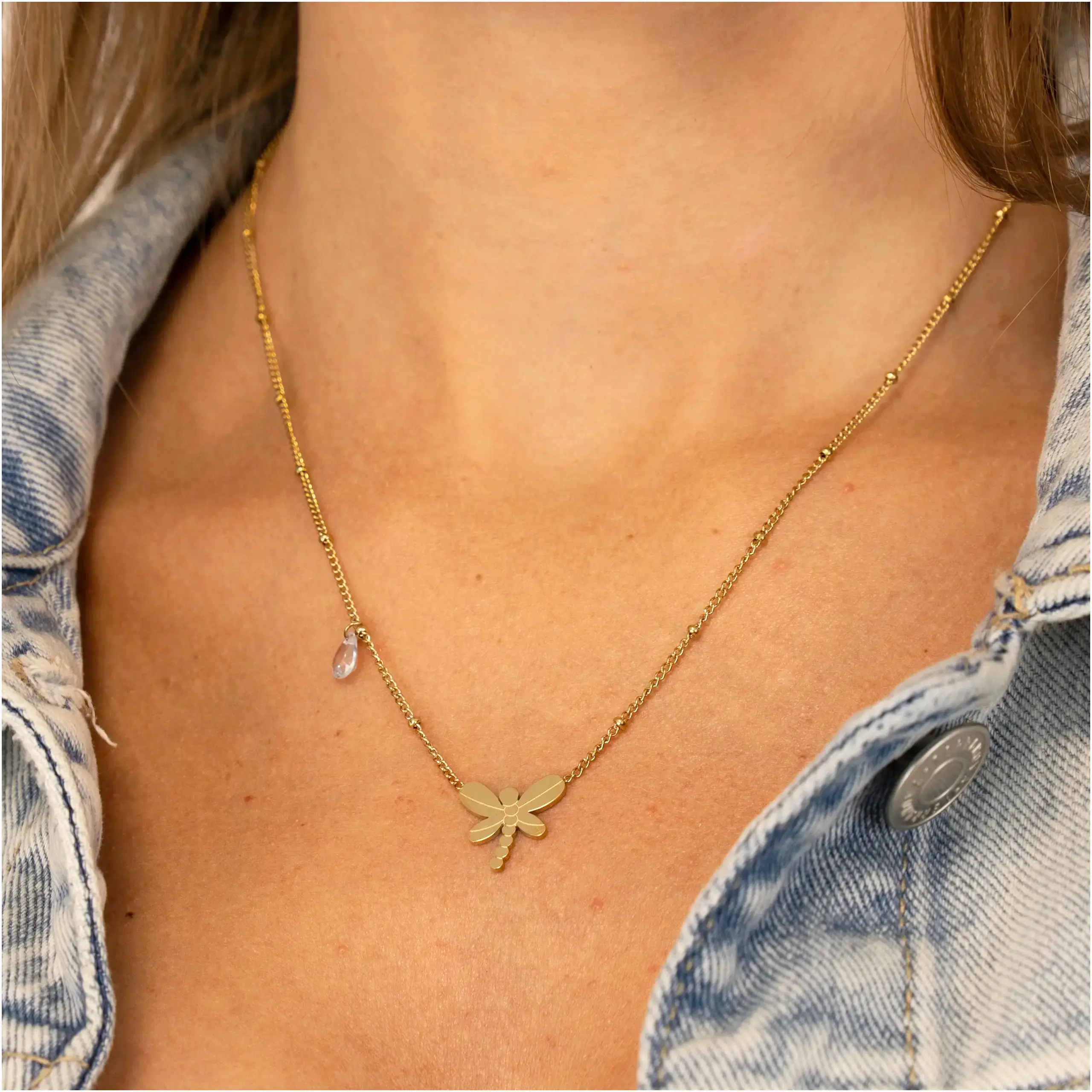 Strona główna | Sklep | Naszyjniki | Naszyjnik złoty damski stal chirurgiczna ze stali Ważka – pudełko gratis