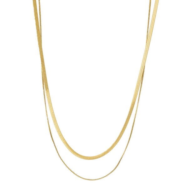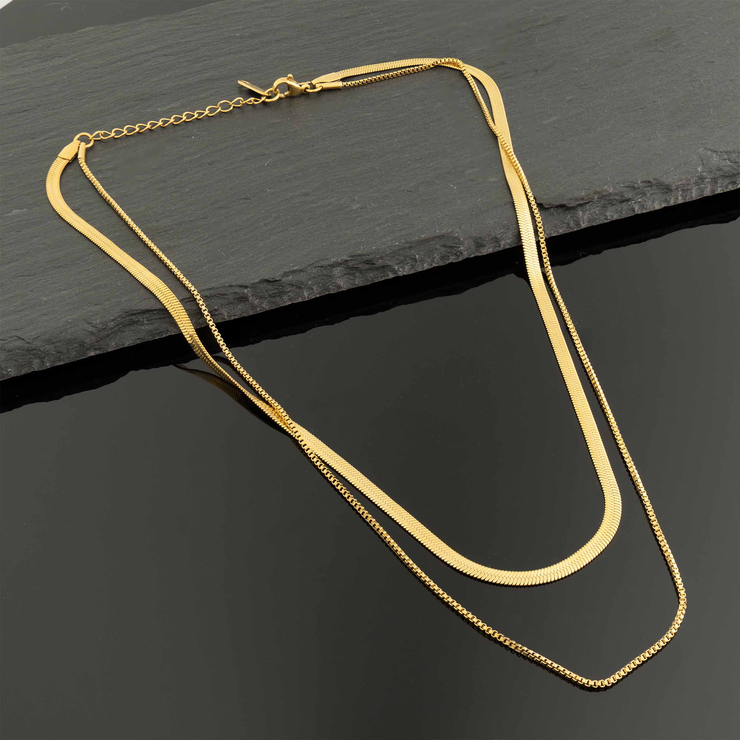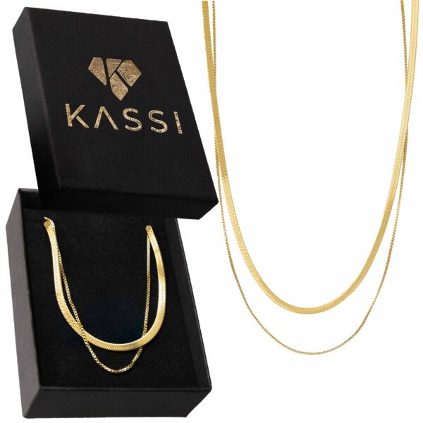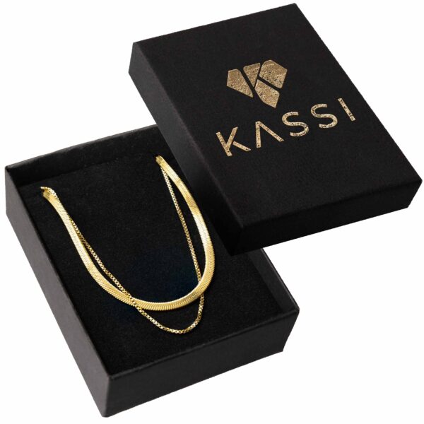 złożony z płaskiej, błyszczącej żmijki (snake) i delikatnego łańcuszka typu box, które możesz nosić razem lub osobno. Efekt? Luksusowy, warstwowy look za ułamek ceny prawdziwego złota.