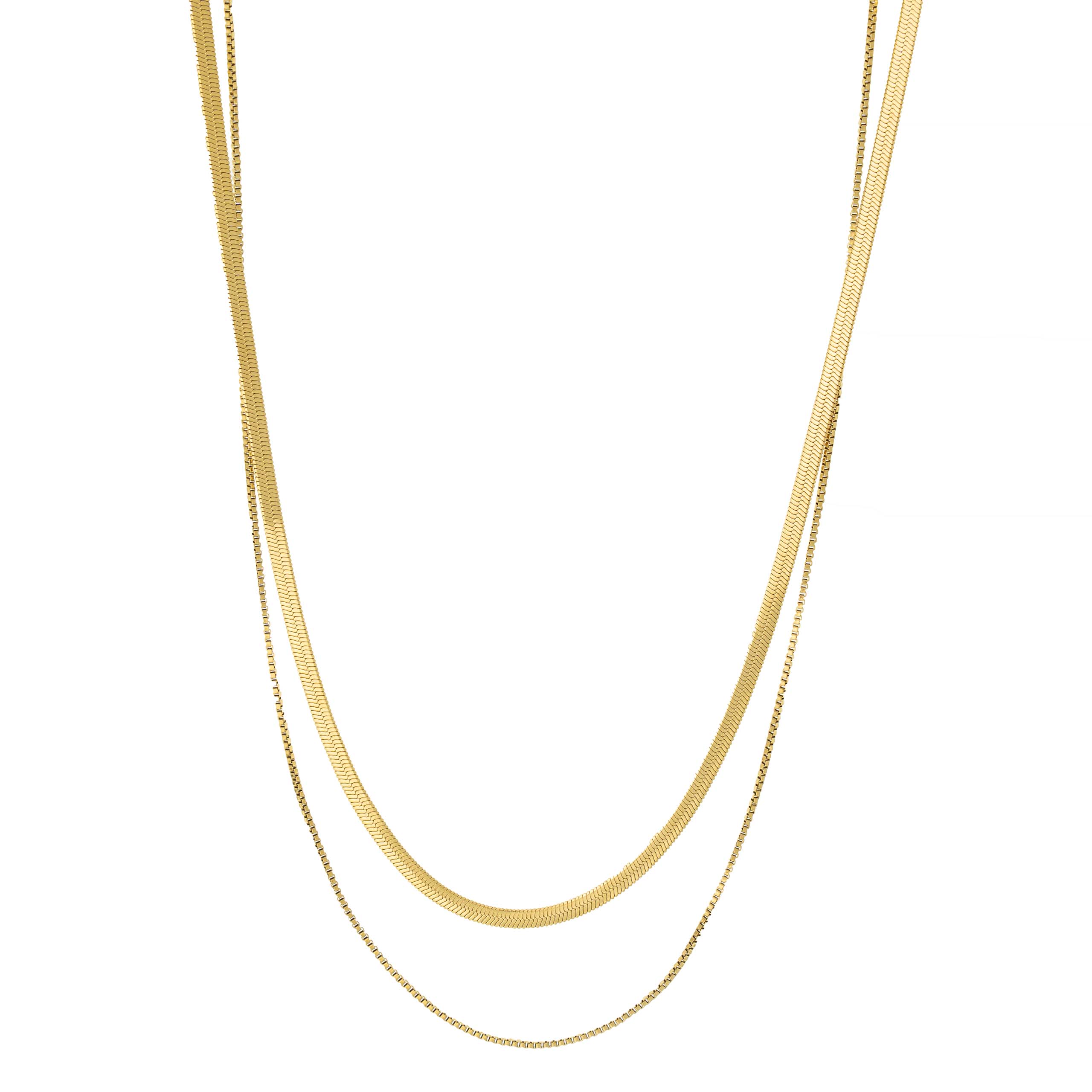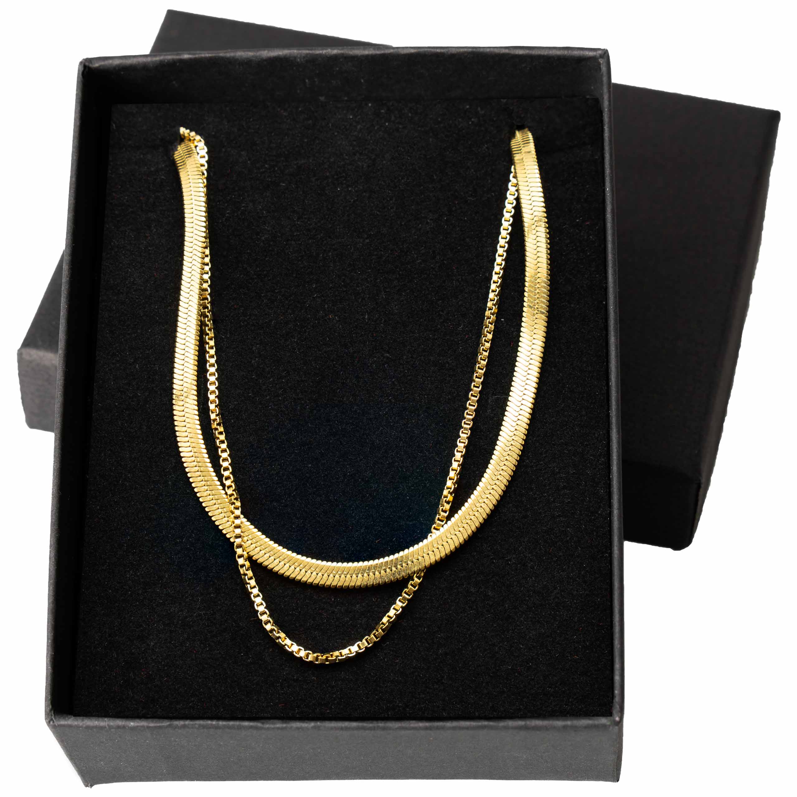 Strona główna | Sklep | Naszyjniki | Podwójny naszyjnik żmijka + łańcuszek box pozłacany 18K stal złoty