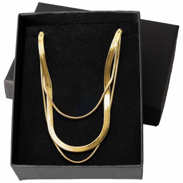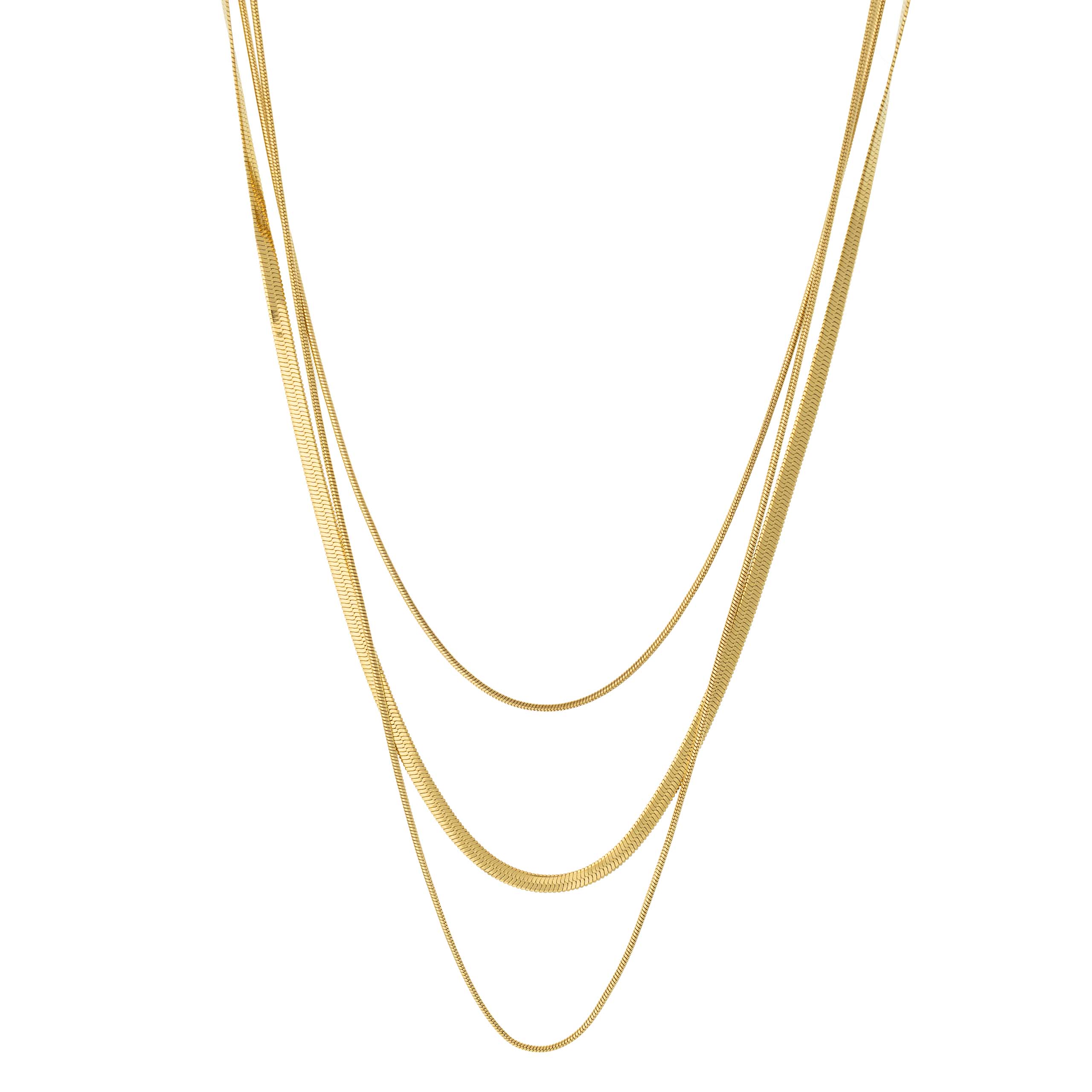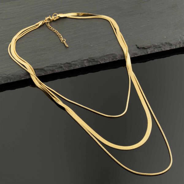Strona główna | Sklep | Naszyjniki | Potrójny naszyjnik żmijka 3 mm + 2x linka pozłacany 18K stal złoty