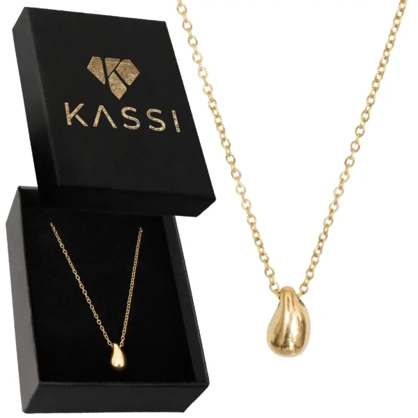Wprowadź odrobinę wyrafinowania do swojej kolekcji biżuterii dzięki temu delikatnemu naszyjnikowi pozłacanemu, wykonanemu z trwałej stali szlachetnej. Jego minimalistyczny design wyróżnia się subtelnym wisiorkiem w kształcie kropli, który lśni w złocistym odcieniu, przyciągając spojrzenia swoim prostym, a zarazem eleganckim wyglądem. Smukły łańcuszek o klasycznym splocie idealnie podkreśla dekolt, sprawiając, że naszyjnik jest doskonałym dodatkiem do lekkich bluzek, swetrów czy wieczorowych sukienek, dodając blasku każdej stylizacji.