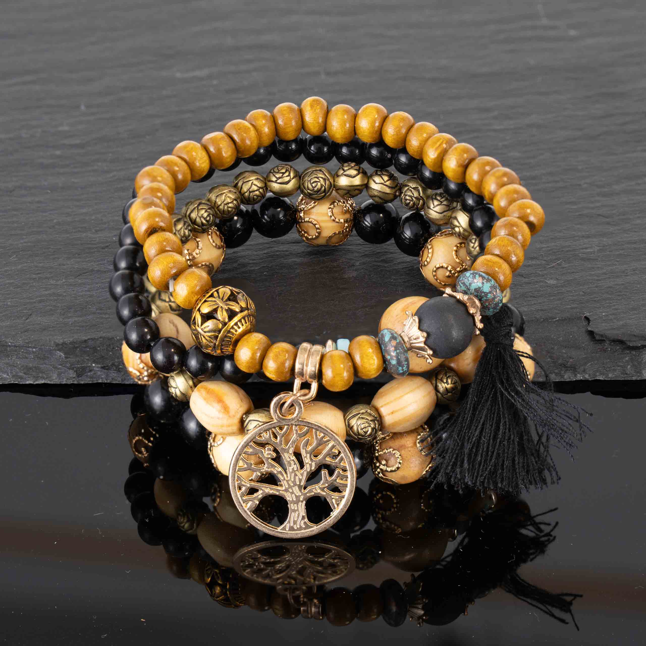 Strona główna | Sklep | Bransoletki | Zestaw Bransoletek Drzewo Życia Czarny – Elegancka Biżuteria