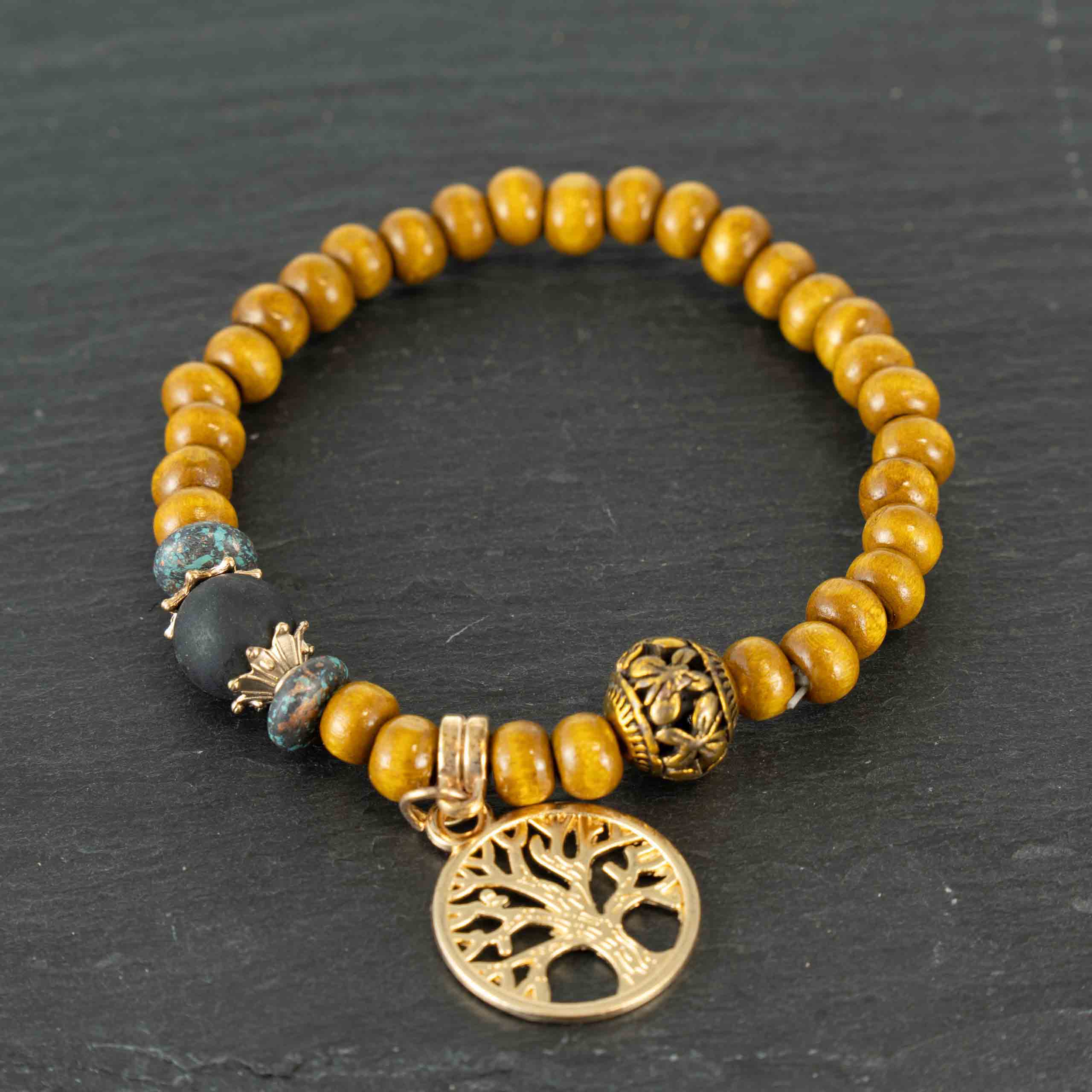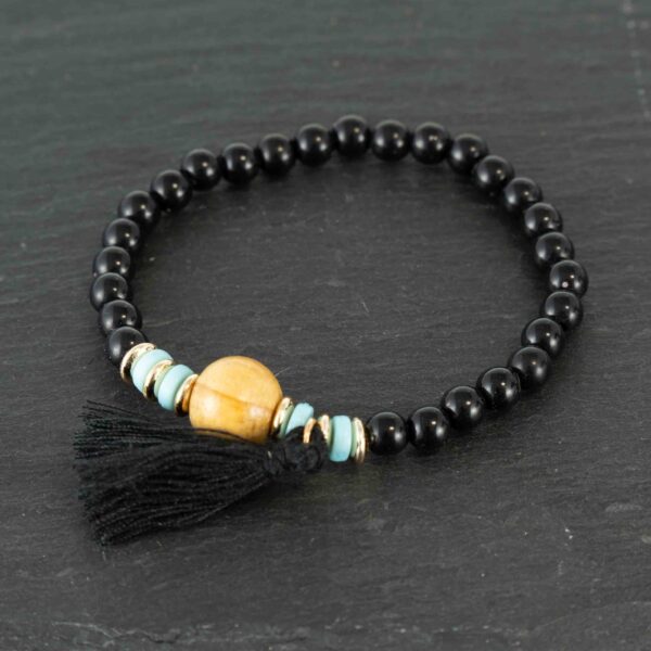 Odkryj wyrafinowany zestaw bransoletek z motywem Drzewa Życia w głębokim, czarnym kolorze, który emanuje elegancją i tajemniczością. Wykonany z naturalnych drewnianych koralików w czarnym wykończeniu, zestaw uzupełniają subtelne srebrne akcenty, dodając mu nowoczesnego charakteru. W komplecie znajdziesz bransoletkę z czarnym sznurem i charmsem Drzewa Życia, symbolizującym siłę i mądrość. Idealny dla kobiet ceniących minimalizm i ponadczasowy styl, sprawdzi się zarówno na co dzień, jak i podczas wieczornych wyjść. Bransoletki są elastyczne i doskonale dopasowują się do nadgarstka.