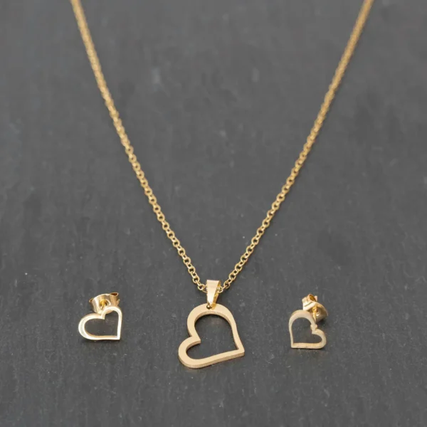 Strona główna | Sklep | Zestawy | Złoty Zestaw Damski Naszyjnik i Kolczyki Serce Stal Szlachetna Pozłacana