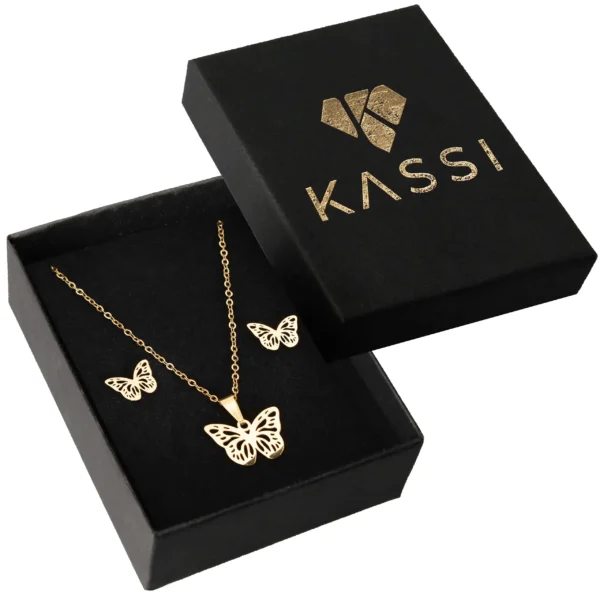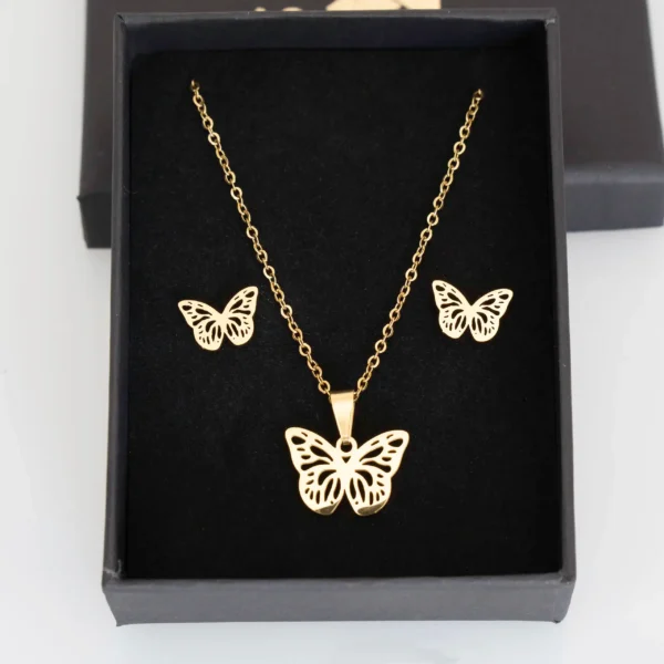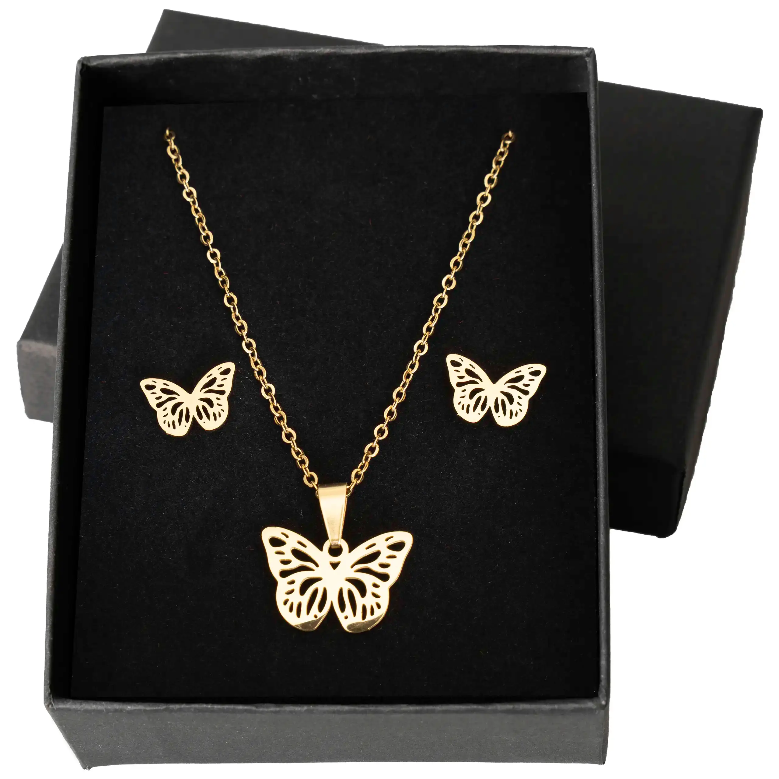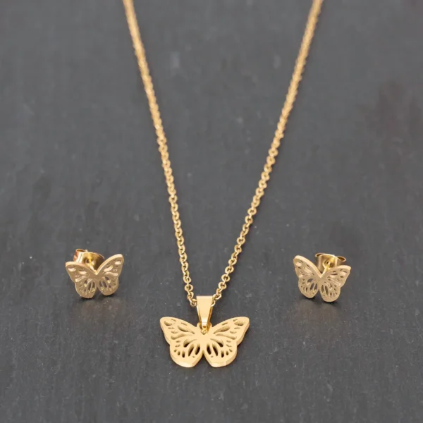 Strona główna | Sklep | Bestsellery | złoty Zestaw naszyjnik i kolczyki motyl komplet Stal pozłacana złota 585
