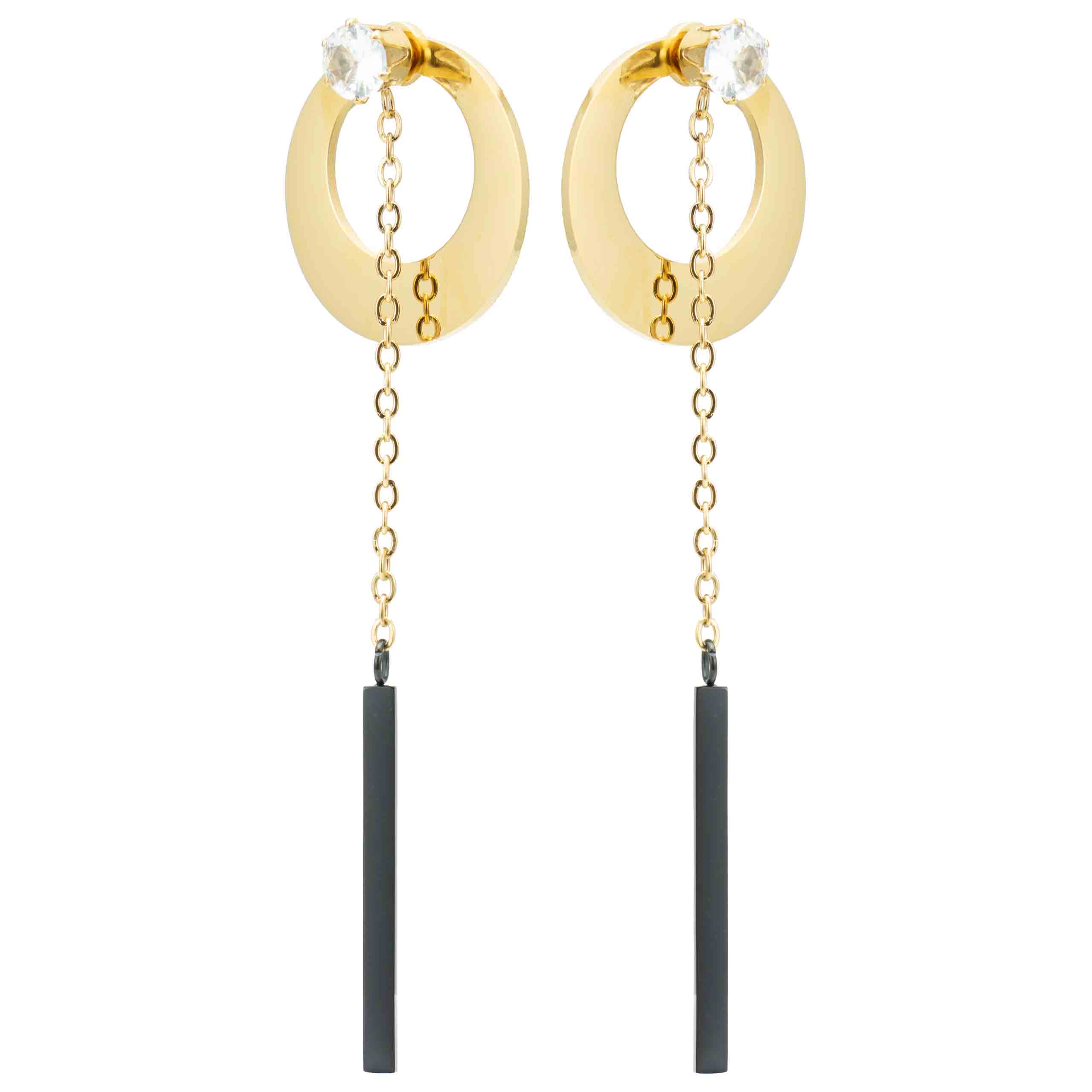 Złote kolczyki z owalnym wycięciem i cyrkoniami to połączenie prostoty z nowoczesnym stylem. Hipoalergiczne i wszechstronne, sprawdzą się na codzień i specjalne okazje. Szybka wysyłka w eleganckim pudełku!