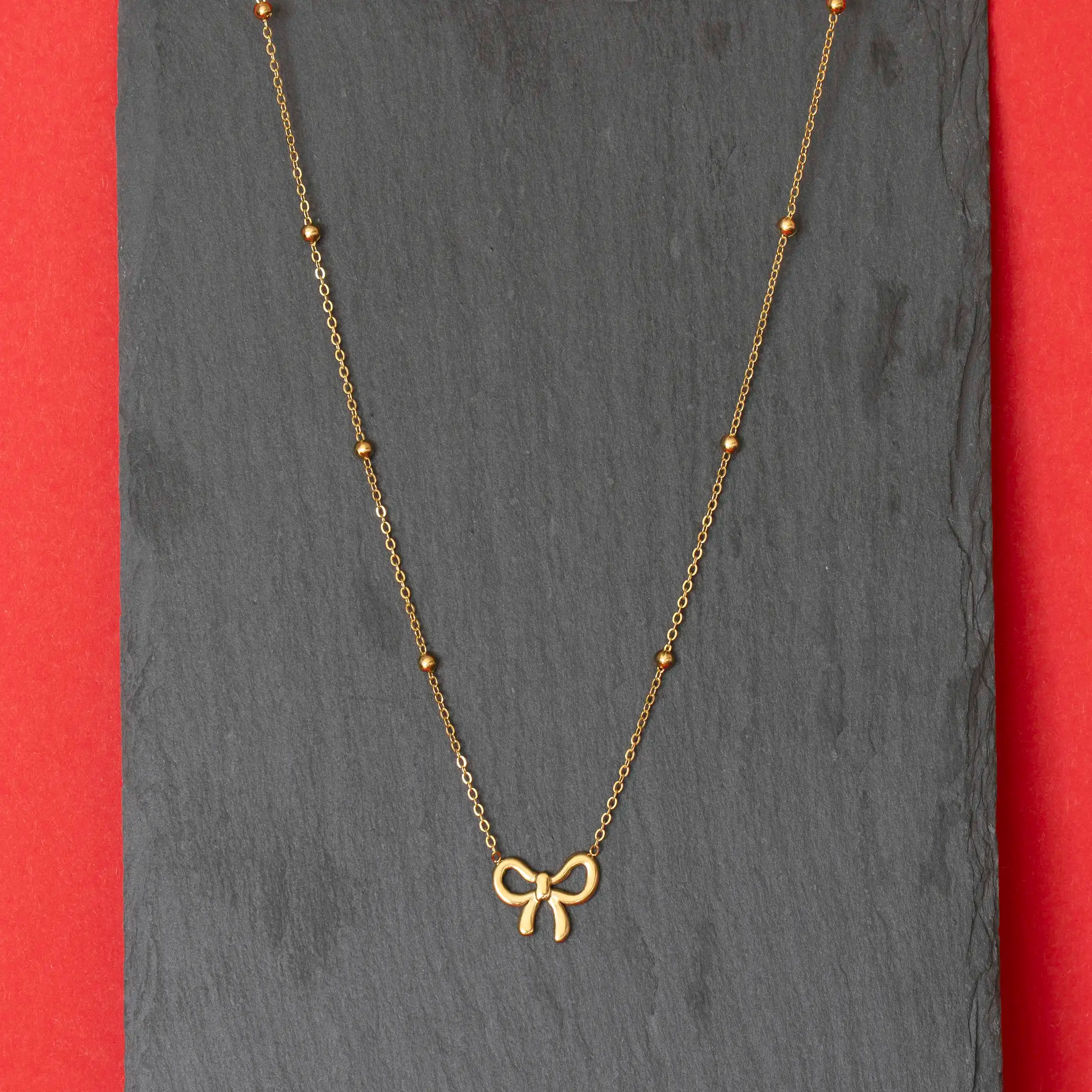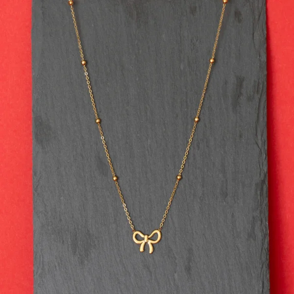 Strona główna | Sklep | Bestsellery | Złoty łańcuszek naszyjnik damski kokarda stal szlachetna 585