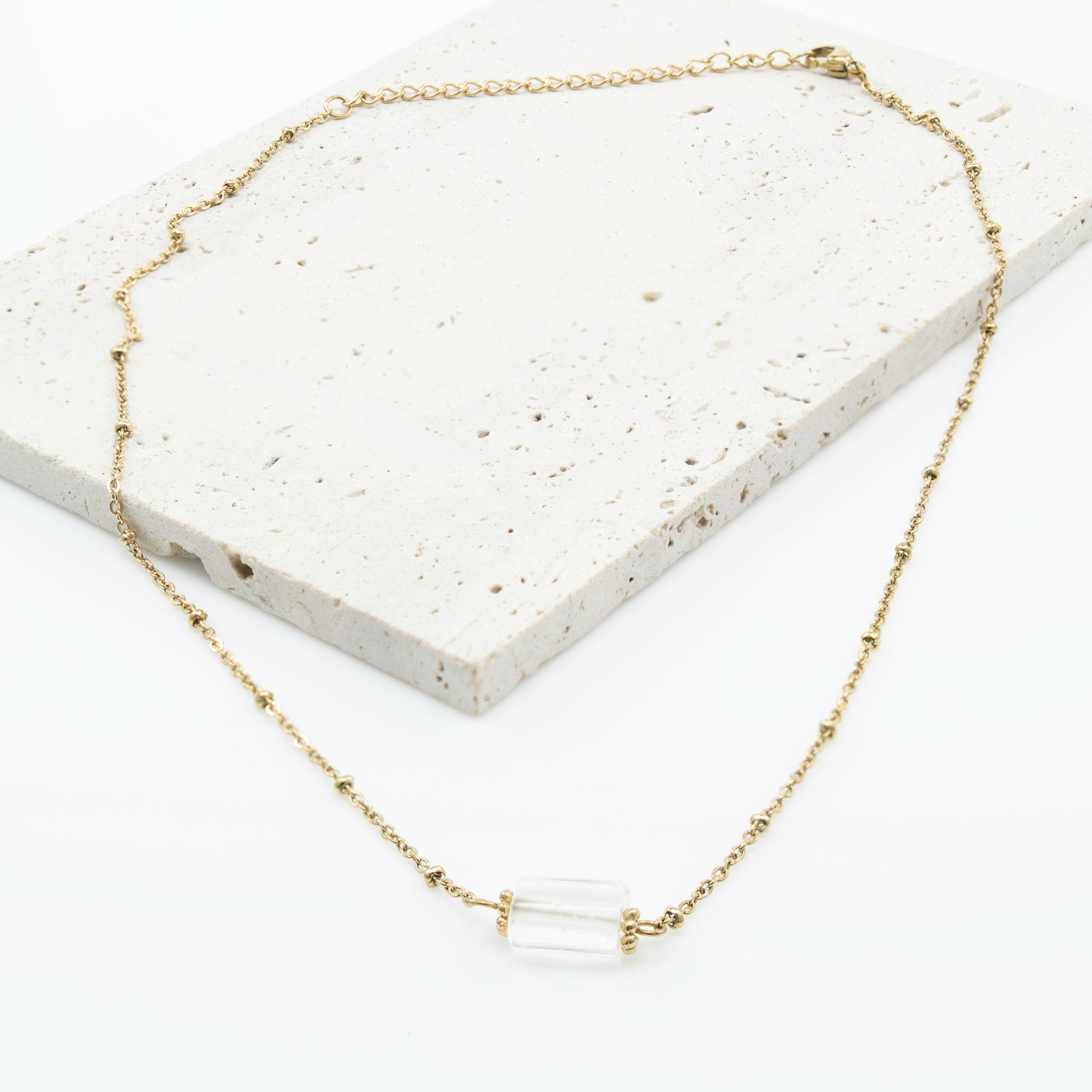 Strona główna | Sklep | Naszyjniki | Złoty Naszyjnik pozłacany ze stali chirurgicznej z Kwarcem Kamiennym